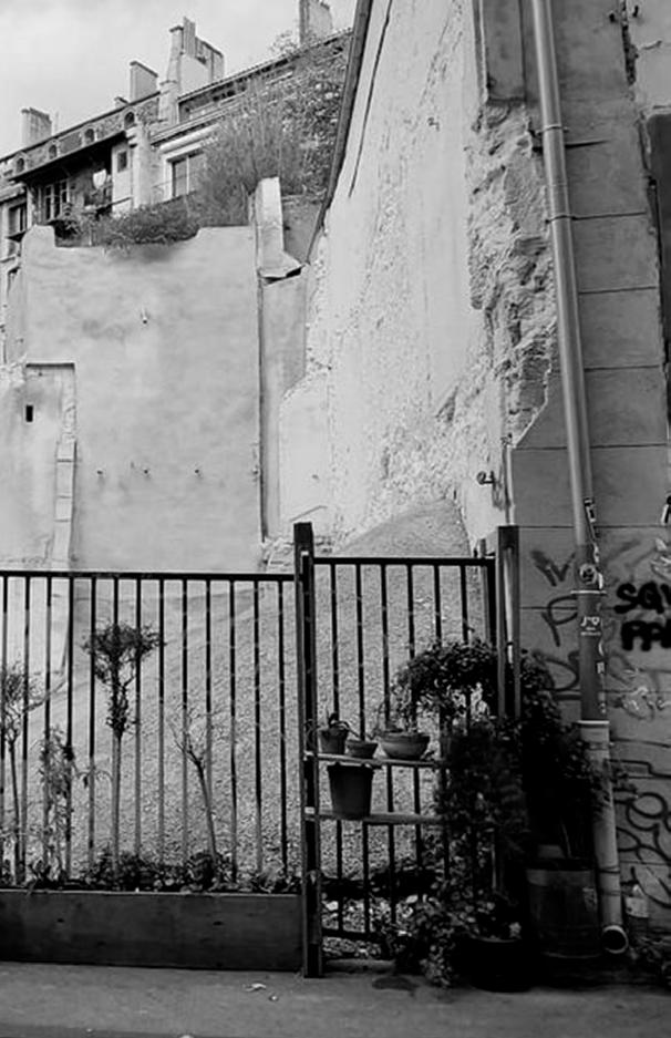 « Walter Benjamin : Regardez cette façade derrière la palissade, regardez ces ordures jetées derrière les planches mal jointes. Tout le mépris de l’humain est écrit là; mépris de ceux qui ont voté la démolition des quartiers de la Bourse jusqu’à la rue Colbert en 1906; mépris de ceux qui ont construit, de 1913 à aujourd’hui, treize années de ruines lentes; mépris des décideurs qui laissent pourrir une situation et font d’un projet urbain un abandon humain; mépris contagieux de ceux qui ont si mal construit les palissades alentour; mépris de ceux qui, jetant leurs détritus derrière ce masque de bois font de la vieille façade que nous regardons une ordure tout juste bonne à disparaître, car bien sûr elle va s’effondrer. Et les rats pullulent dans cette réunification volontaire ».