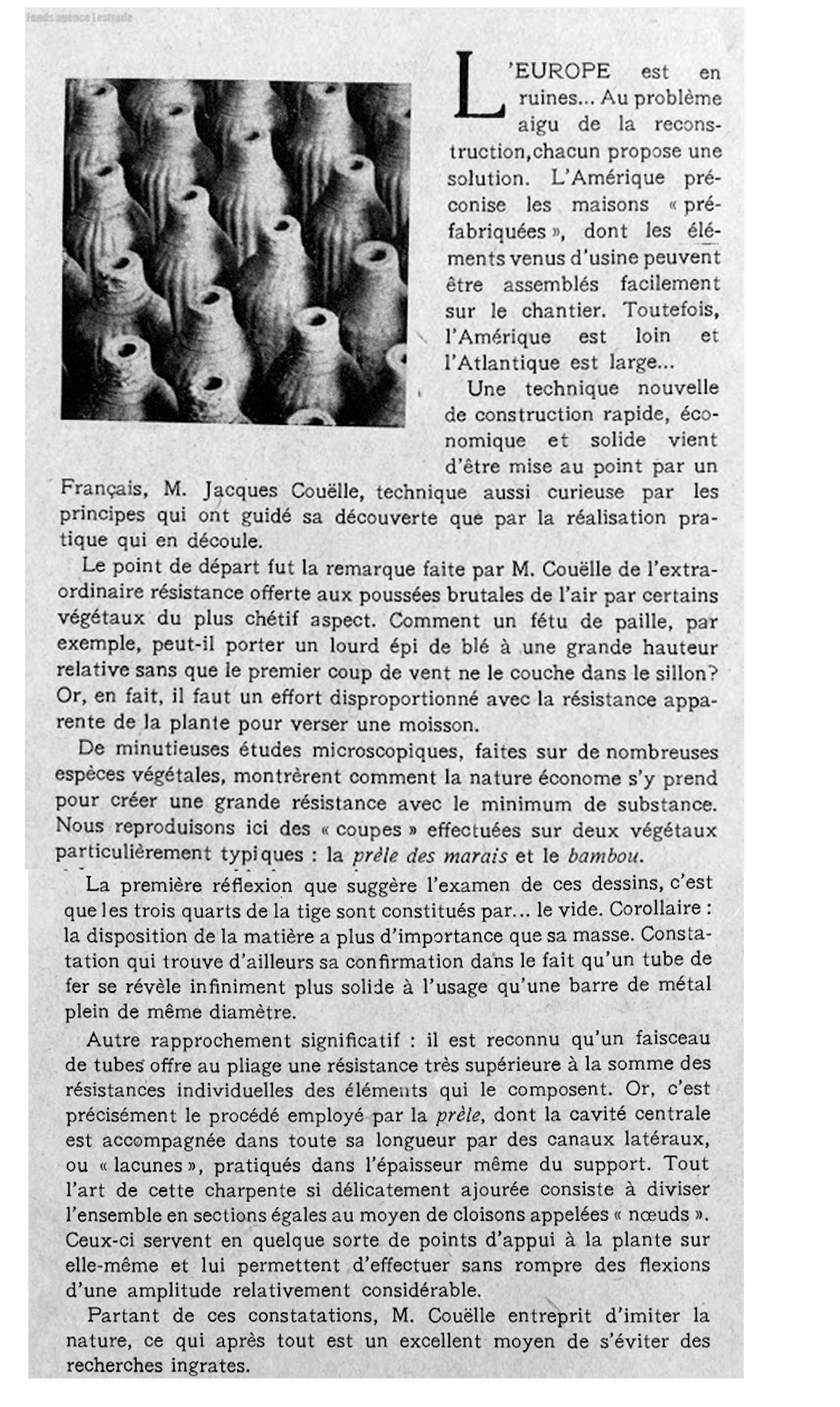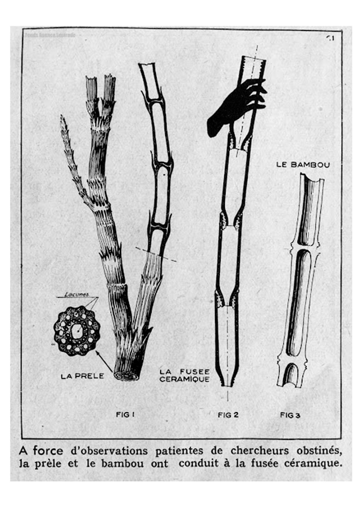 Dans les années 1940, Jacques Couëlle invente le principe de la fusée céramique au sein du Centre de recherches des structures naturelles. La fusée céramique est un élément en terre cuite dont les éléments s’emboîtent les uns dans les autres à la manière des tiges de bambou ou de la prêle.