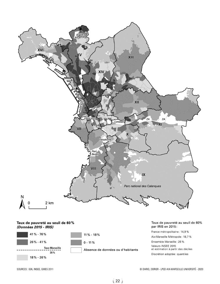 [...] Dans ce contexte, les actions publiques se sont orientées en priorité vers la production de logements destinés aux classes moyennes. Correspondant à une recherche de renouvellement urbain et de « mixité sociale » imposés, les stratégies locales ont accélérées la gentrification du centre-ville (exemples du projet d’aménagement Euromed ou des ZAC et projets d’éco-quartiers inaboutis), tout en mettant de côté les besoins des personnes en situation précaire alors que le taux de pauvreté atteint 26 % à Marseille.
