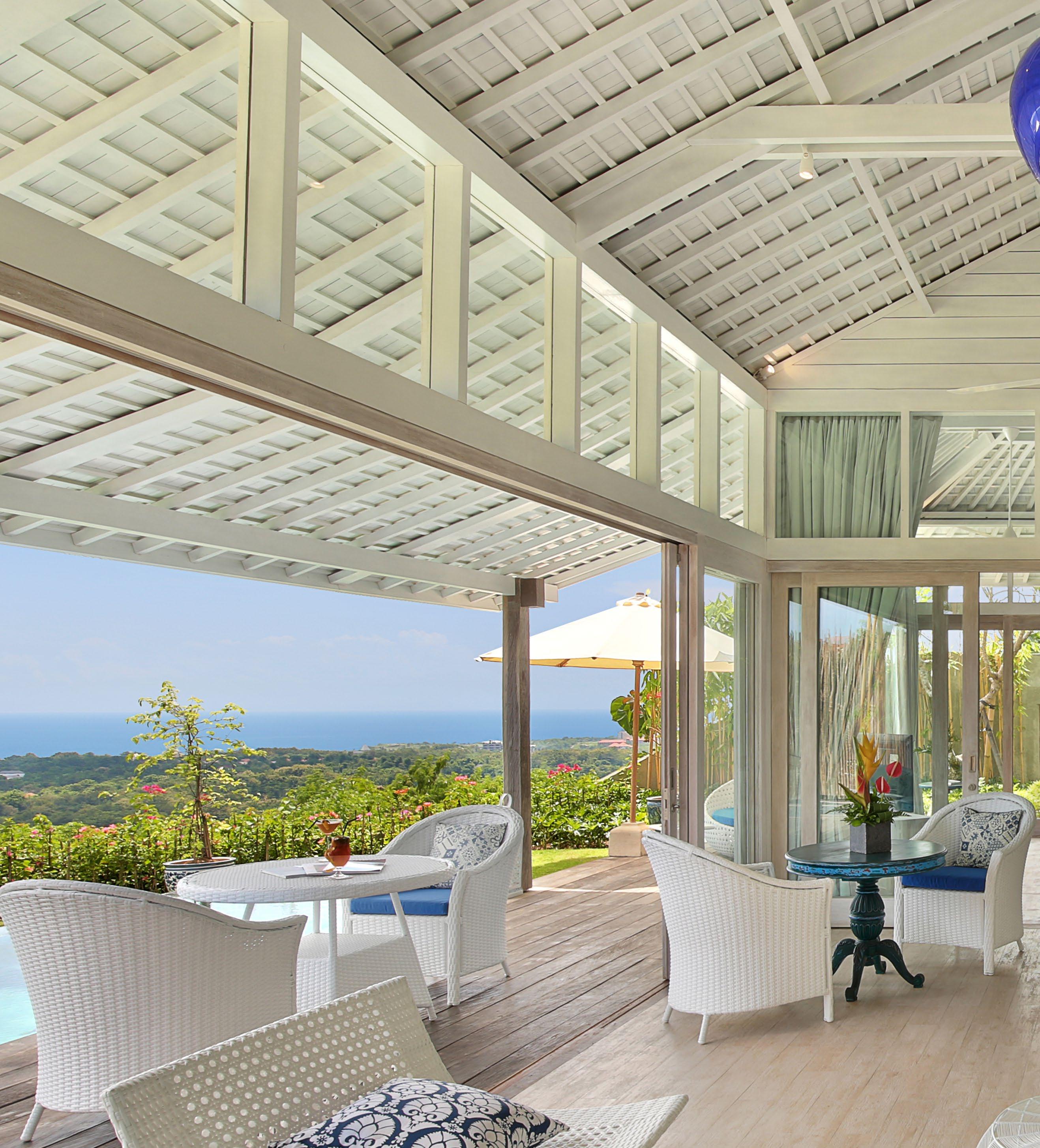 Elevated view over THE NAI HARN's Sail Roof Garden and Nai Harn Beach, voted by TripAdvisor as the best in Thailand,