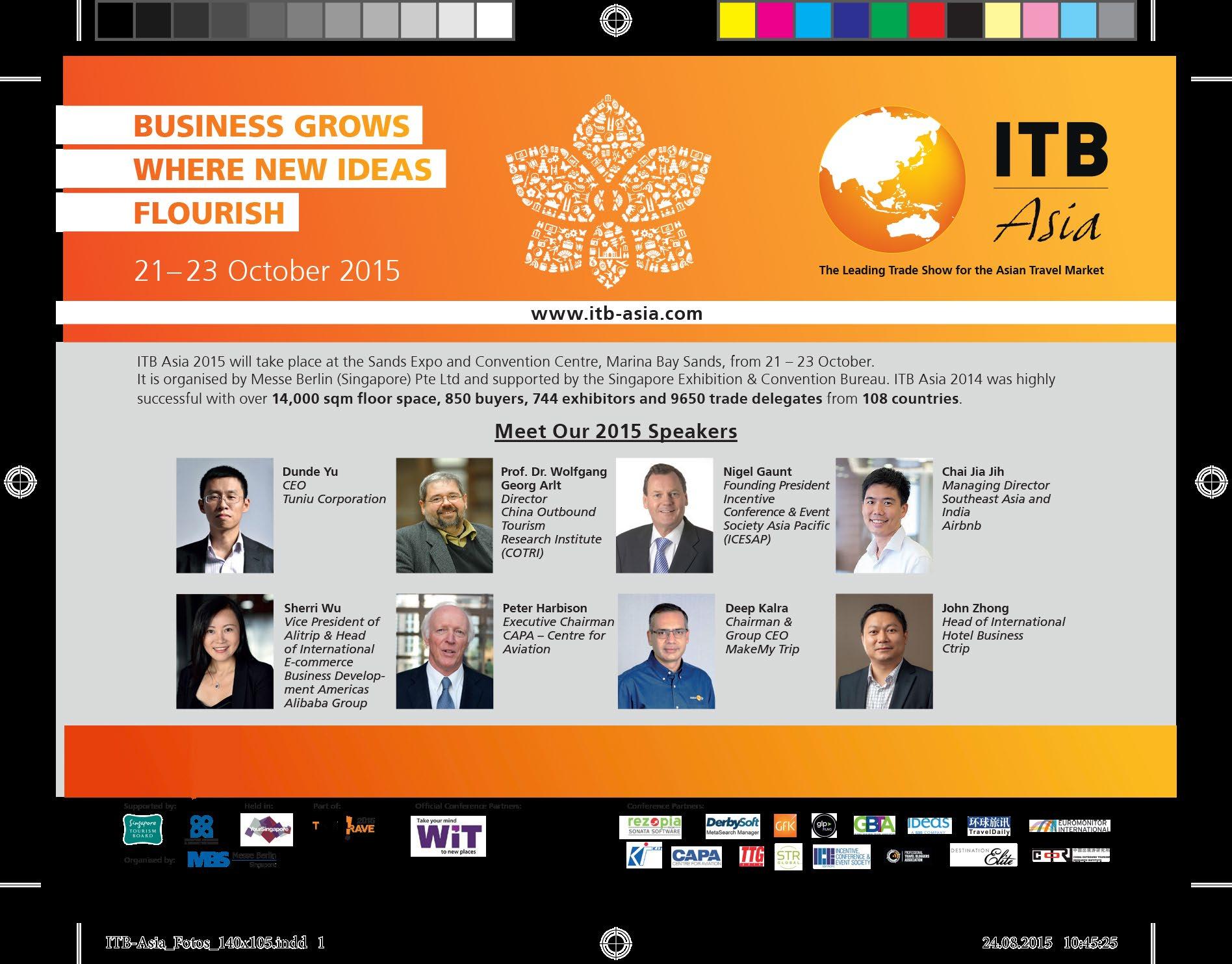 • Hear from our distinguished conference part ners such as: NATAS Travel Conference 2015, TTG Conference, K.I.T. Group, ITB Asia Clinics, ITB CSR Day and many more…