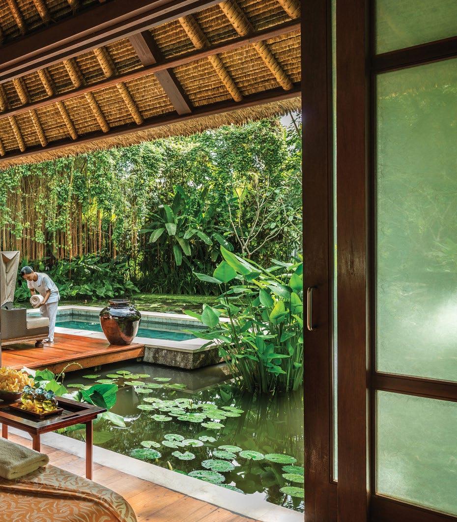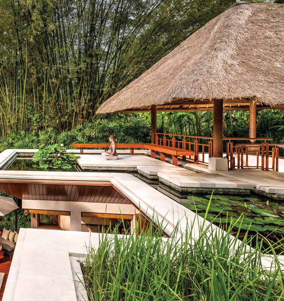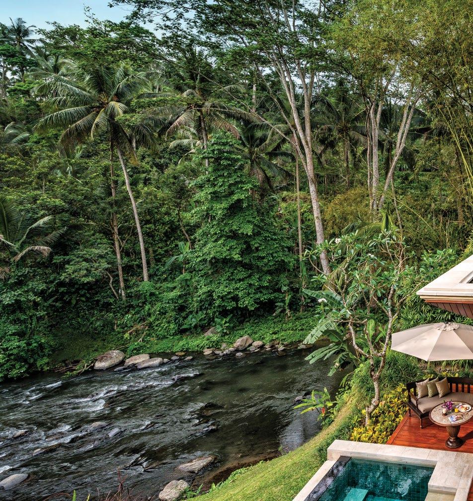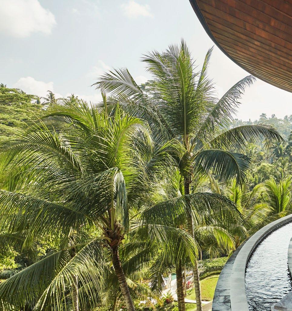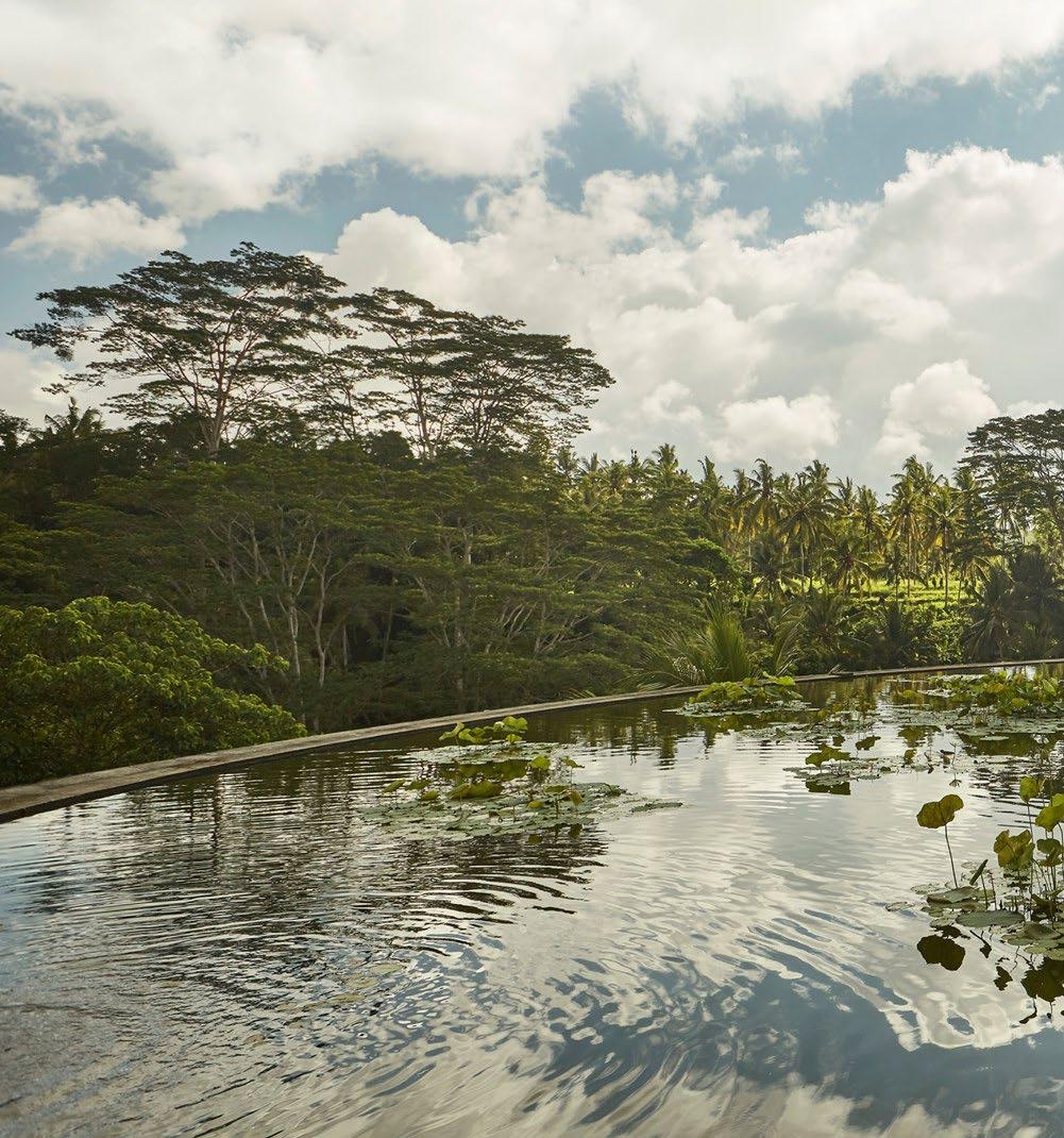 Signature experiences include onsite Cooking Academy, a curative journey at The Healing Village Spa, surfing tours with Tropicsurf, and all-day di ning and beachclub at Sundara. In the central highlands near Ubud, Four Seasons Sayan invites you to an inti mate hideaway nestled between two rivers. Entrance to this architectural icon is via a footbridge high above the treetops, which brings you to a stunning rooftop lobby pond to start your descent into paradise. Retreat from the world in spacious suites and private villas submerged in the jungle and embark on a culinary journey at Sokasi cooking school. Visit Sacred River Spa for chakra-rebalancing treatments, meet the resident Well ness Mentor for meditation and Life Talks, and take a private rafting jour ney down the Ayung River.