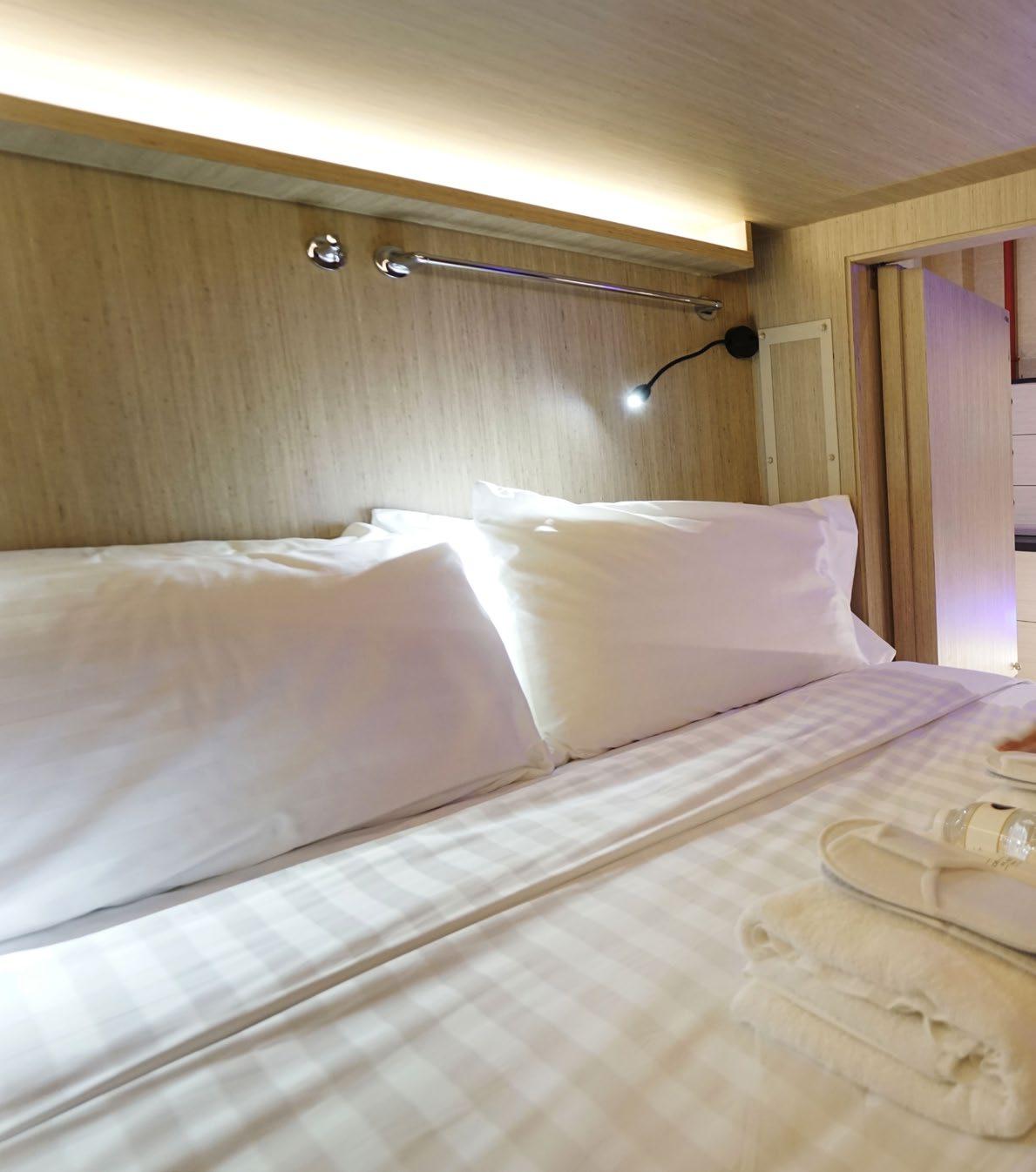 Following the successful launch of its first capsule hotel in Chinatown in 2016, CUBE Boutique Capsule Hotel at Kampong Glam offers another 56 beds - a mix of singles and queens- each in its own cozy capsu le. Measuring 6 ft x 3 ft x 4ft for a single and 6 ft x 5 ft x 4 ft for a queen with plush mattresses and linen, each capsule is well designed to moderate its own temperature and air-flow; and solidly insulated to re duce ambient noise for a comfortable rest.