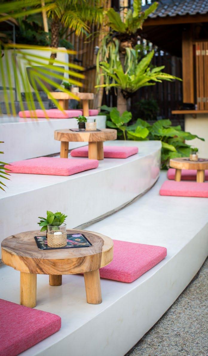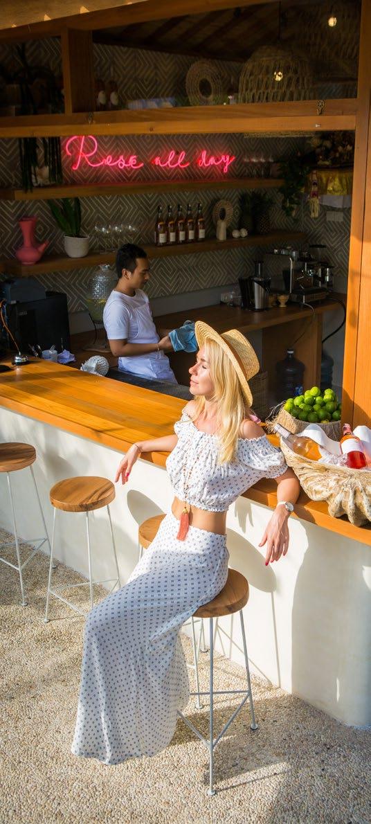 In the evenings, the place converts into a soft and subdued setting, where the bartender offers made to measure, sig nature cocktails that guests can sip quietly at the bar or in one of the small lounges for more privacy. The bar offers a more festive atmosphere with DJs on the weekend.