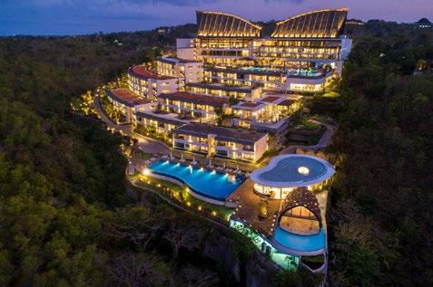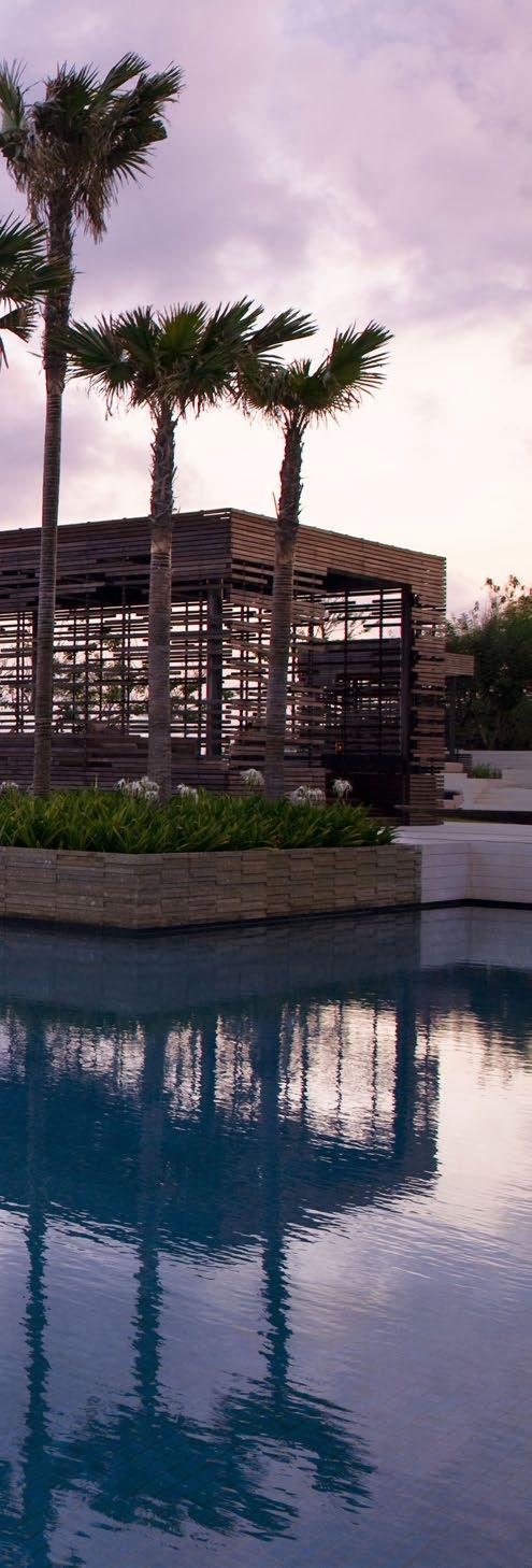 Located in Jimbaran Bay and perched on a hill offering unparalleled ocean views, Raffles Bali will comprise just 32 private villas, each with its own private pool, for the ultimate in luxurious seclusion. Owned by PT Jimba ran Greenhill, the resort has been designed to blend seamlessly with its tropical surrounds. Sprawling over 23 hectares in the exclusive Jimbaran area of Bali, the Raffles will bring new levels of bespoke service in a creative, se ductive setting that will capture those famous Jimbaran sunsets. The resort will feature the famous Writers Bar, a luxurious Raffles Wellbeing Spa celebrating local rituals and healing treatments, and a beautiful restaurant at the heart of the resort, which will provide fresh, imaginative menus in surroundings that speak to the local Balinese architecture and traditions.