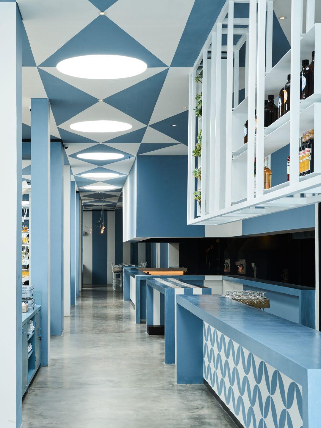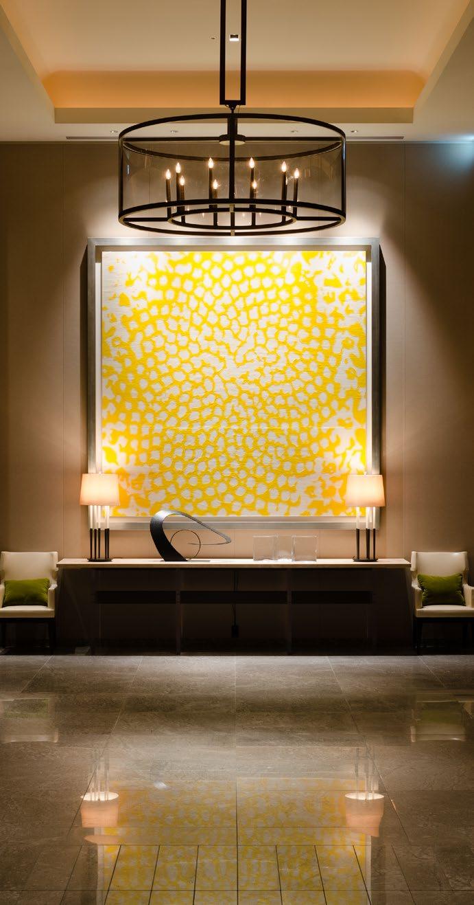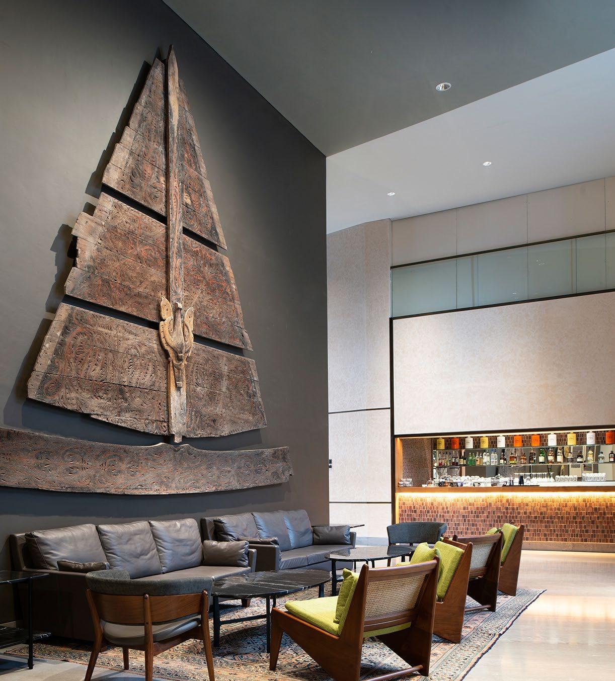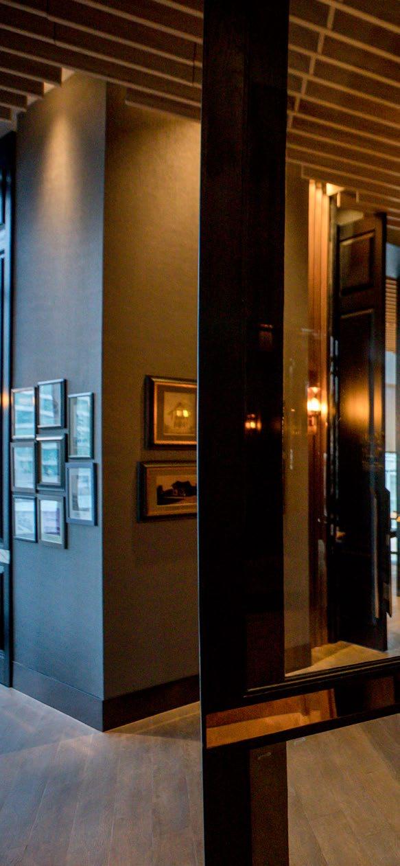 Located next to the lobby at ground level, the Artisian Bar is designed as a gathering space for the artisan community. Its high ceilings and modern, minimalist furnishings cre ate a relaxed atmosphere for creative events and chill-out gatherings,