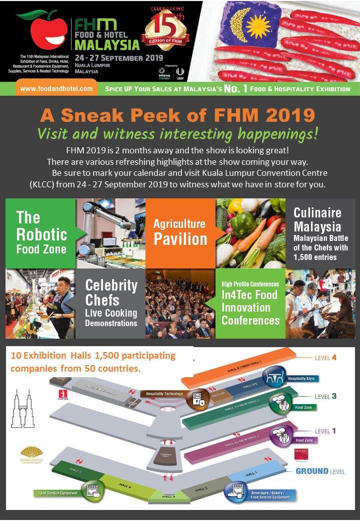 Food and Hotel Malaysia 2019, The Malaysian premier trade only food and hospitality show, Food & Hotel Malaysia (FHM), will be back for the 15th time from 24-27 September 2019 , makes sure you save the date, and register as soon as you can. Read about FHM2019 start on page 100 and just click there to register.