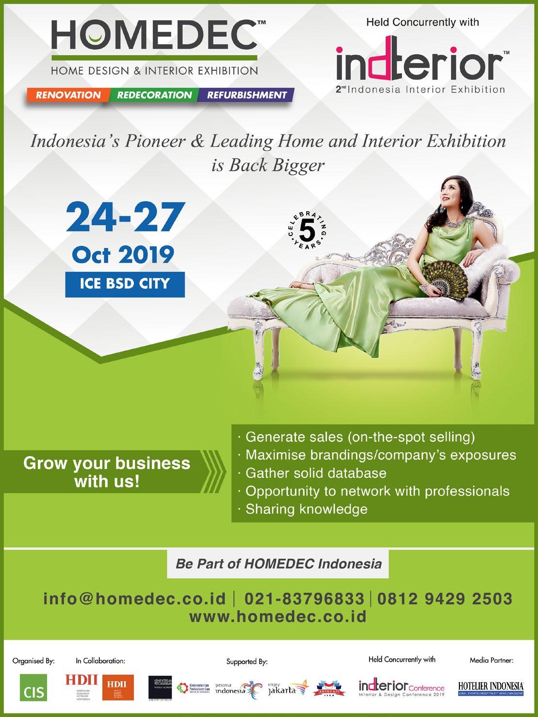 Wed, 23 - Sat, 26 Oct 2019 Furniture & Craft Indonesia 2nd edition Jakarta, Indonesia Showcasing Furniture for Trade and Project in October buying season