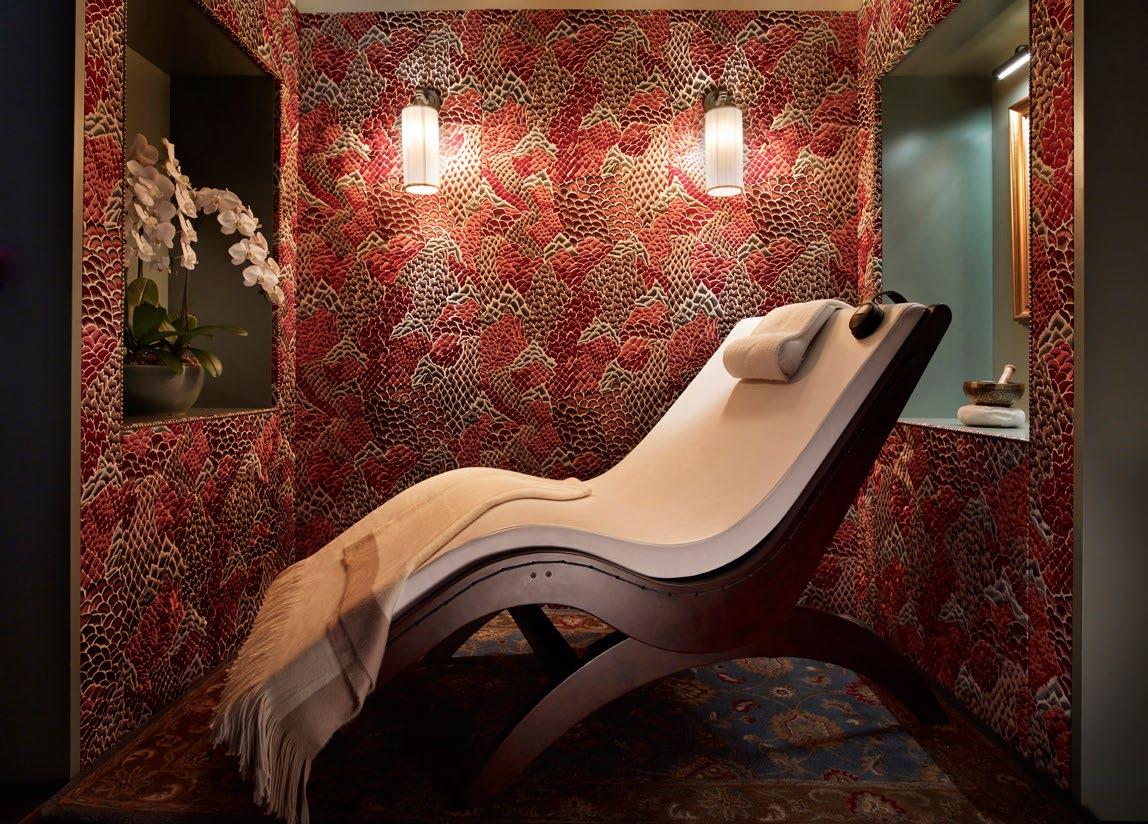 Following the consultation, a relaxing ritual with warm ame thyst crystals reduces daily stress and tension starting with a back, neck and shoulders massage. The journey continues with an orchid-scented Himalayan salt scrub, a rose body mask and a lifting facial massage and concludes with a well ness lunch at either Yellow Pot Chinese Restaurant or Cook & Tras Social Library.