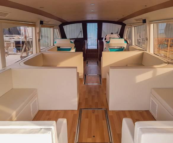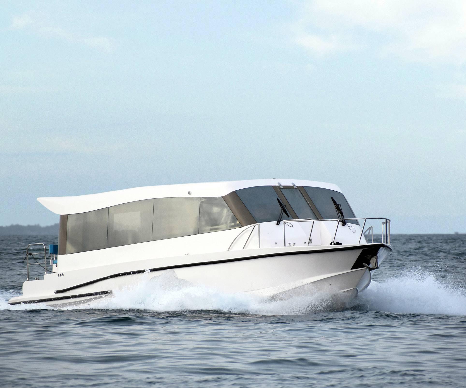 With a capacity to carry 40 - 50 passengers at an average speed of 30 to 38 knots the AS 47 comes with 3 outboard engines. The fully enclosed housing makes way for fully customizable featuers, ranging from, redesigning the seating arrangement, accommodating 4 engines, air conditioning, custom interior design, installation of entertainment systems...etc.