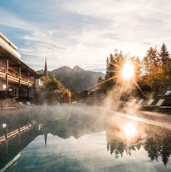 There are all-year-round heated indoor and outdoor pools in our spa area with water at a pleasant temperature of at least 30°C, and heated indoor and outdoor hot tubs at 36°C. The roof-top panorama pool provides an unforgettably picturesque sweeping view of the surrounding mountain scenery.