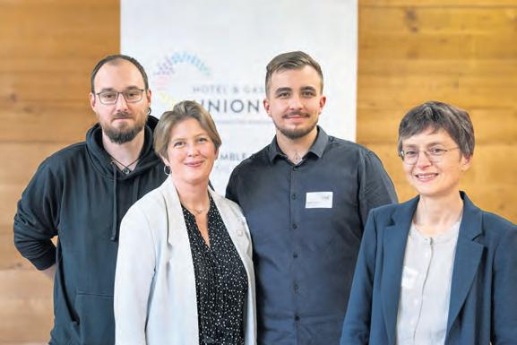 1 Les organisateurs: Stéphane Chaperon (comité romand), Sylvie Wuilleumin, Bastien Imoberdorf et Laetitia Galay (Hotel & Gastro Union).