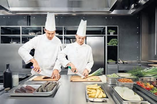 La collection réunit divers modèles adaptés aux multiples tâches de cuisine, du désossage à la découpe fine. La sécurité alimentaire étant primordiale, les couteaux peuvent être différenciés selon leur usage : manche rouge pour la viande, manche vert pour les légumes. Au total, sept couleurs sont disponibles afin d’assurer une distinction claire et intuitive. Ce système facilite non seulement l’organisation des outils, mais permet aussi une identification rapide, renforçant ainsi efficacité, hygiène et traçabilité en cuisine. La codification par couleur peut également servir à distinguer plusieurs services et à améliorer encore le flux de travail dans les cuisines professionnelles. victorinox.com