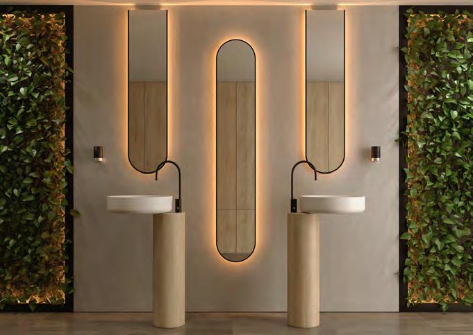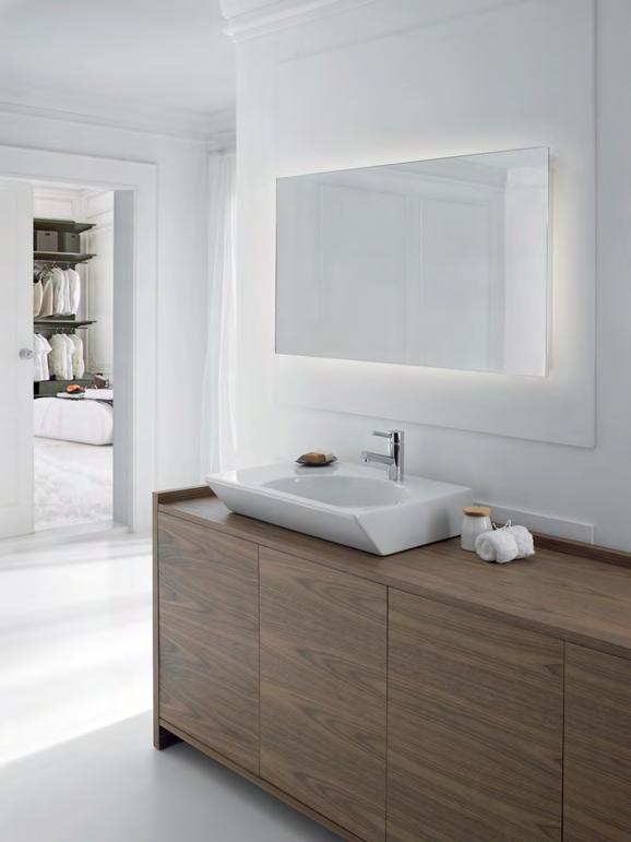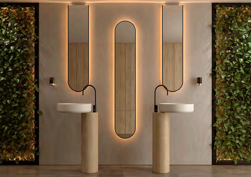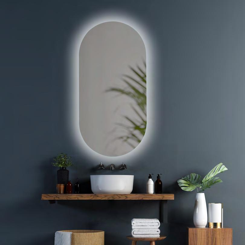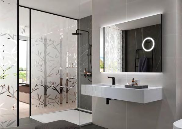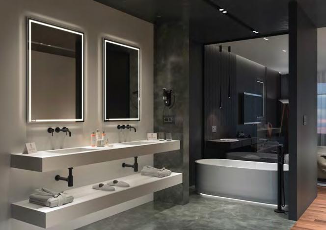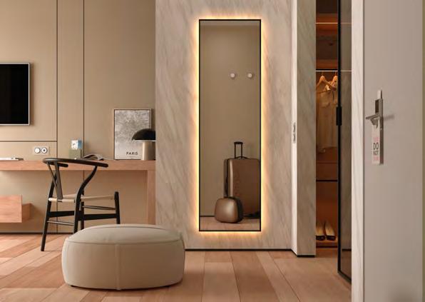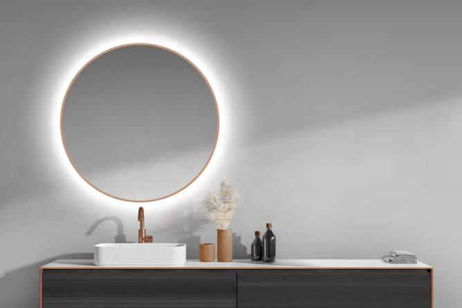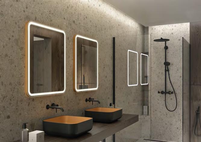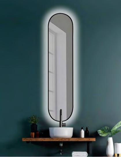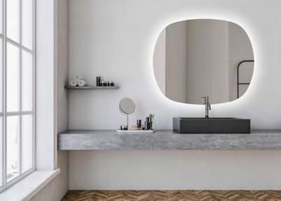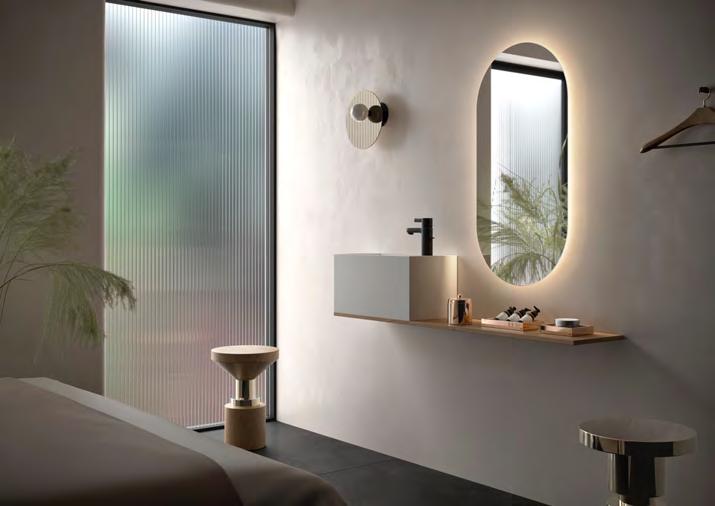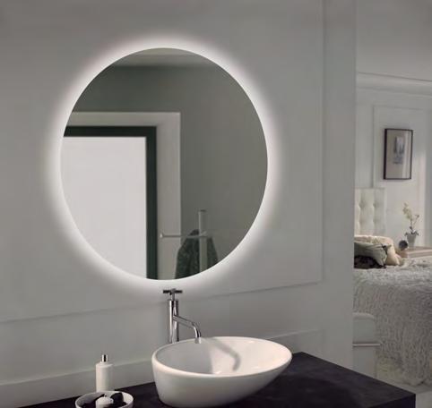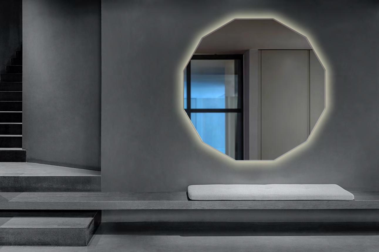irrors with "direct and indirect" light through a perimetral sandblasting, Frameless, smoothly polished edges to create a “free-floating effect" on the wall.