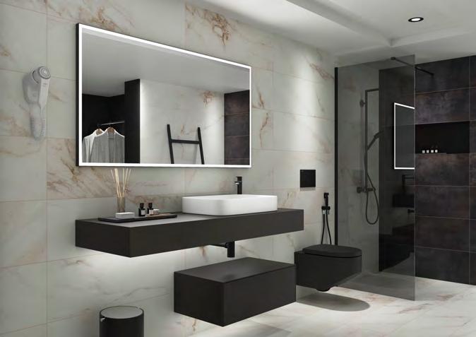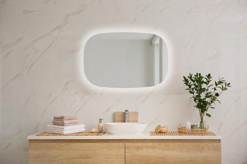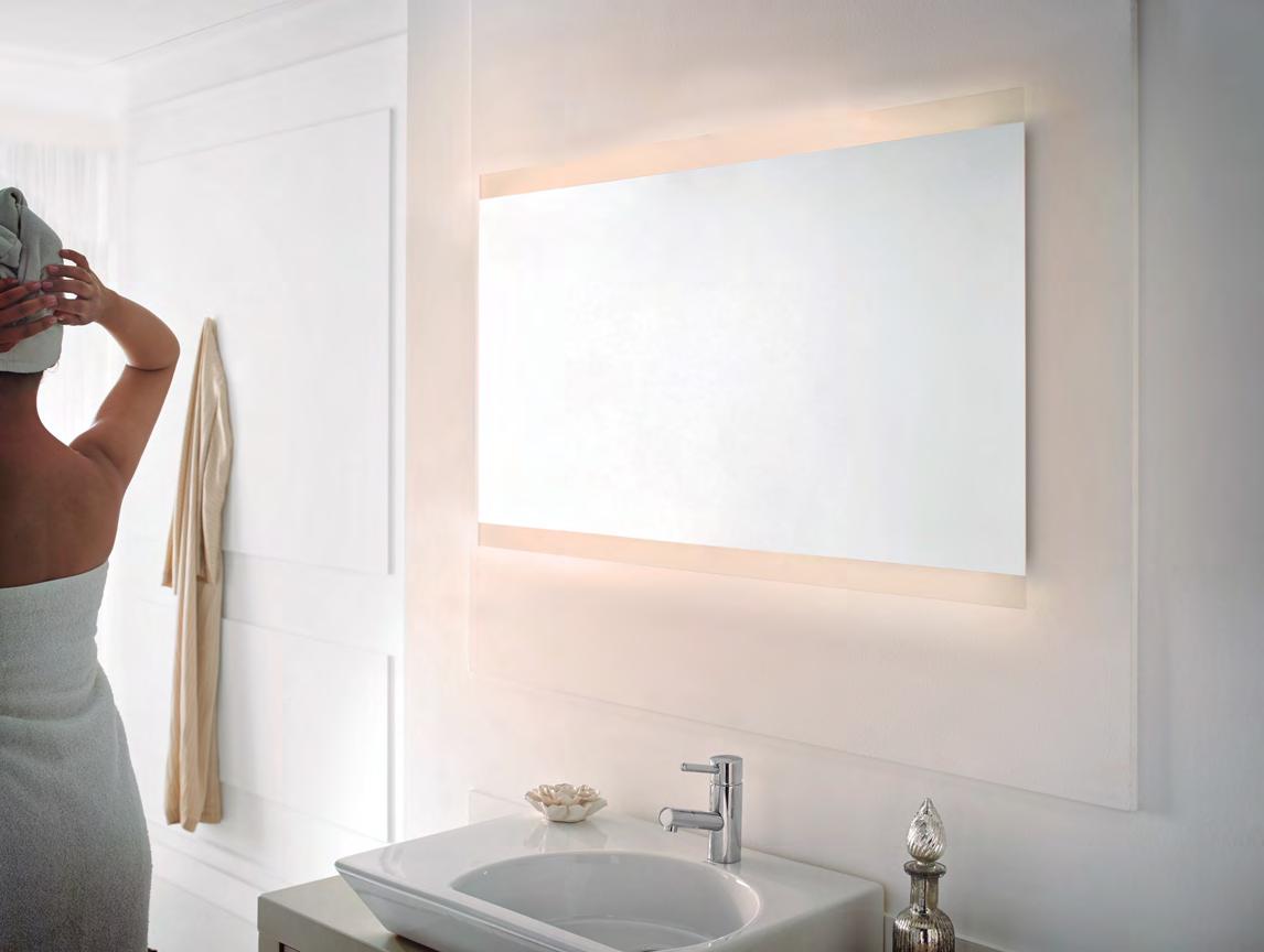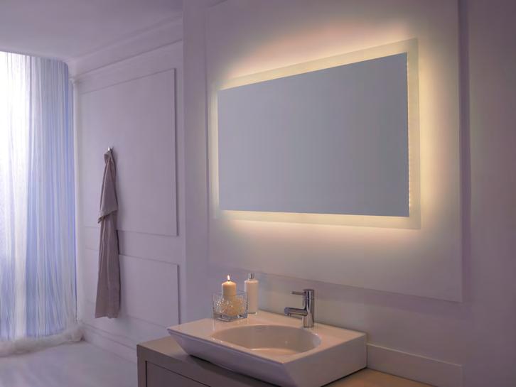Frameless mirrors with smoothly polished edges to create a “free-floating effect” on the wall. (Optional 110V) | 4000K | 5700K Lighting System led strip 120leds/m Power 220-240V Color temperature 3000K Glass 4 mm