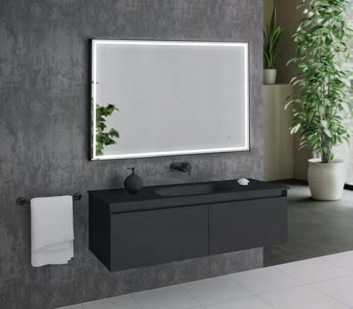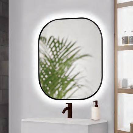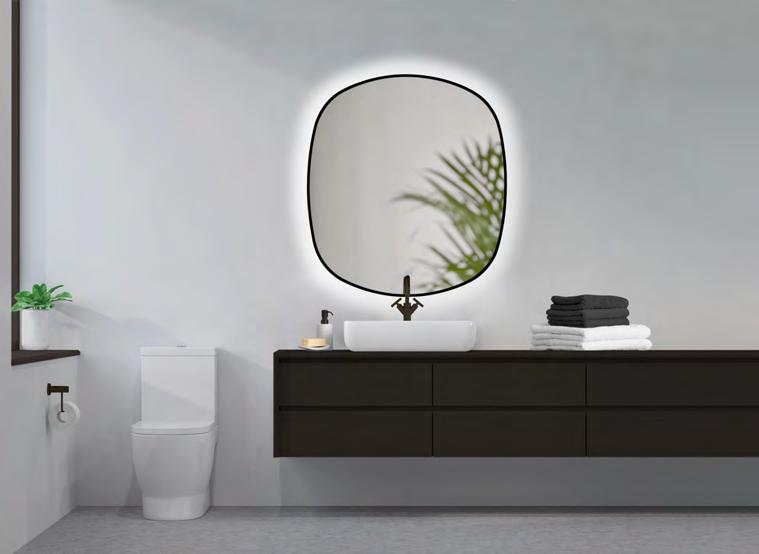 Matt black *Other decorations available on demand Sizes up to 1600 mm. Please consult us for special sizes. Defogger. Touch sensor. Laser or backlit logo. Adjustable intensity.