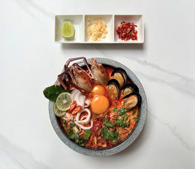 For diners who prefer to sit down and savour something quintessentially Thai, Spice Brasserie’s signature Tom Yum Seafood Noodles, priced at THB 290++, deliver a rich, aromatic bowl layered with fresh seafood and classic herbs. It’s a comforting, flavour-packed option that works just as well for a relaxed lunch as it does for an informal dinner.