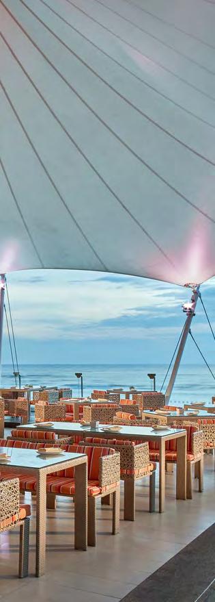 Towering above it all, Edge 20 offers the resort’s most dramatic dining experience. Set high above the shoreline, the restaurant frames panoramic views of the sea and sky, creating a backdrop that shifts from soft sunset golds to deep, starlit indigo. Its contemporary design and refined global menu make it ideal for romantic celebrations or unforgettable evenings, with each dish presented as though it were crafted for this vantage point alone. Dining at Edge 20 feels like an event— an elevated moment suspended between ocean and sky, enhanced by attentive service and a sense of exclusivity that lingers long after the meal ends.