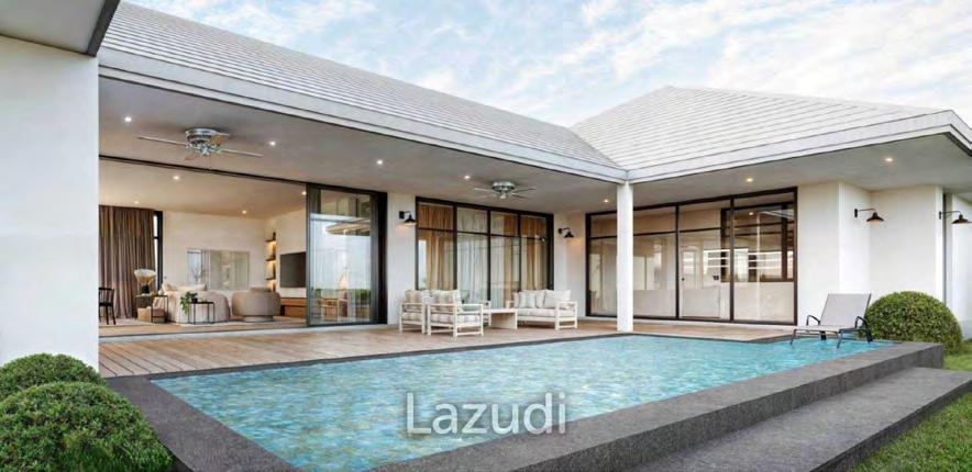 Discover your dream holiday home in scenic Hua Hin, just 2.6km from the beach. These luxury villas offer the perfect blend of modern tropical design and natural harmony on generous plots (530-620sqm) with 407sqm of living space. Each villa features 3 bedrooms (2 master en-suites), private pool, and premium furnishings that create an exclusive luxury experience. The thoughtful design embraces natural surroundings, providing a refreshing atmosphere and superb ventilation. Experience exceptional sophistication and comfort in the heart of Hua Hin—an unforgettable retreat where elegance meets tropical paradise.
