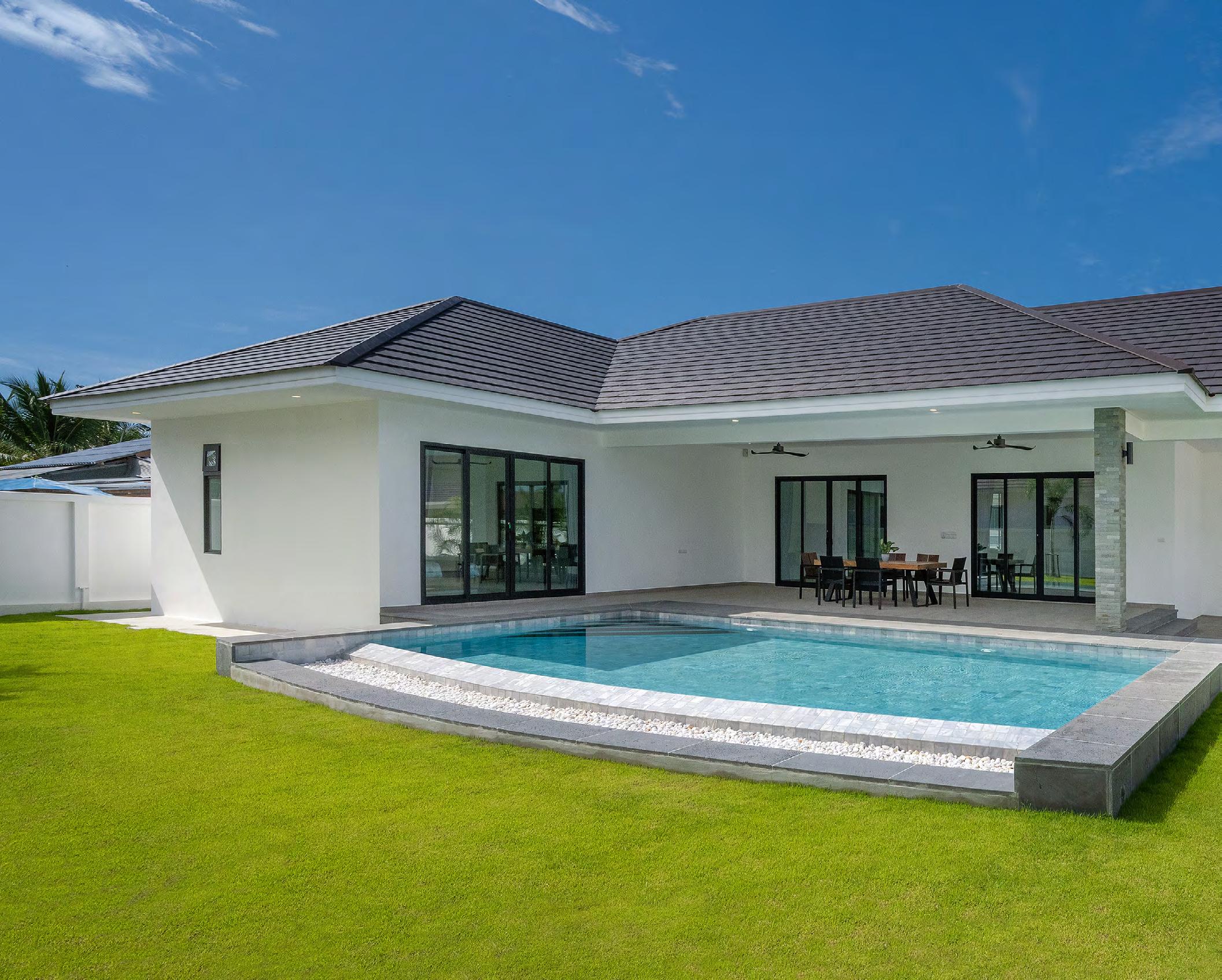 Modern Winner Pool Villas in tranquil Thap Tai, Hua Hin. Single-story elegance with seamless indoor-outdoor living, large swimming pool, and two-car garage. Luxury redefined.
