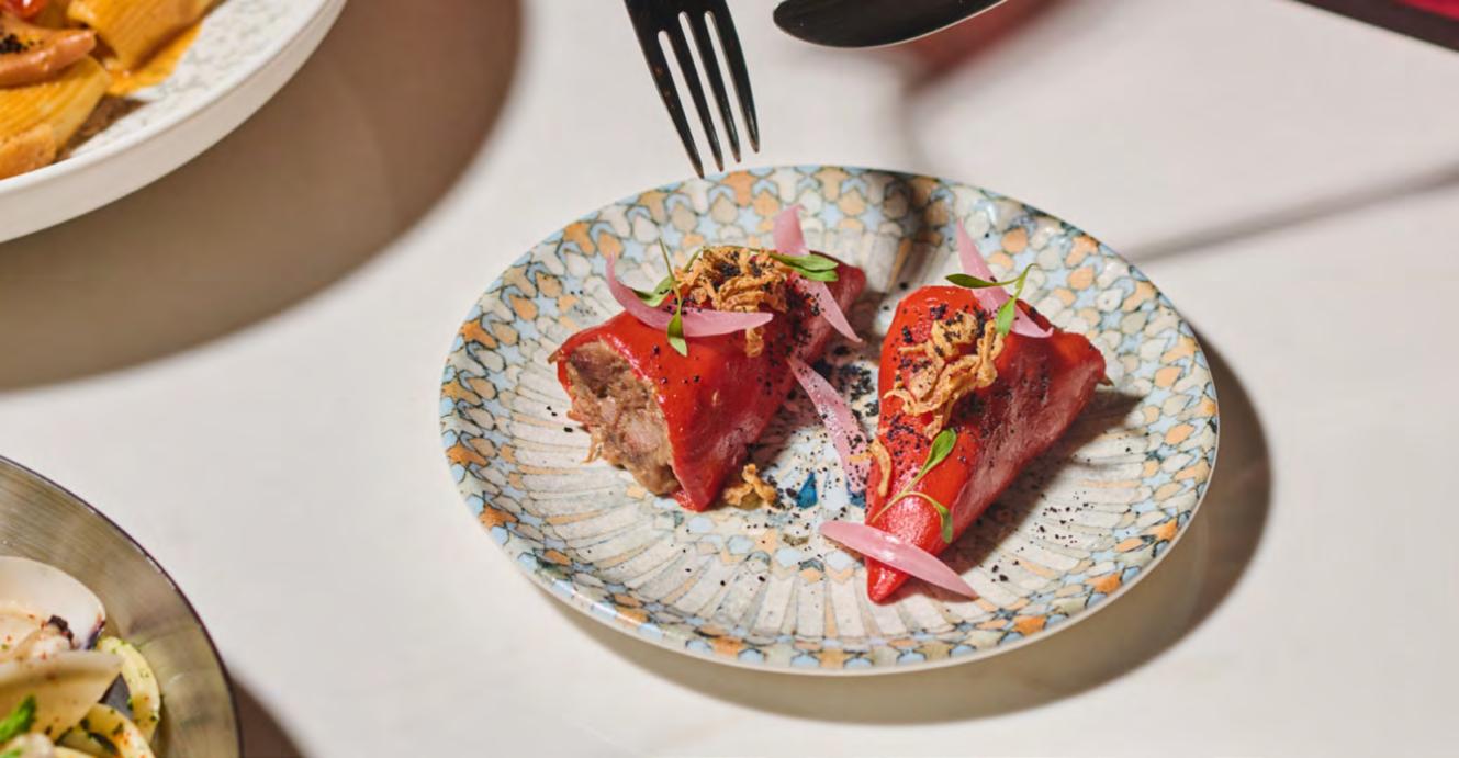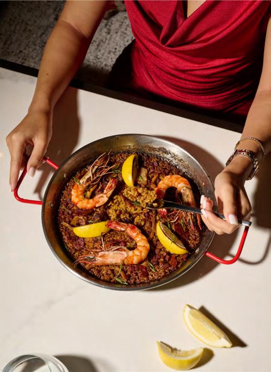 is built around the idea that sharing is more than a way to eat; it is how people connect, celebrate and create memories together. Premium ingredients sourced both locally and from abroad are treated with respect and a light hand, allowing flavours to shine without unnecessary complication. Among the standout dishes are Stuffed Piquillo Peppers filled with confit beef tongue and mustard leaves, and a richly comforting Squid & Chorizo Stew in tomato sauce that feels tailor-made for tearing bread and passing plates. From the grill, Wild Grouper arrives with fennel salad, orange zest and a fragrant bouillabaisse sauce – a nod to the coastal traditions that inspire the kitchen. Childhood Paella, a nostalgic blend of seafood and pork loin, evokes the easy abundance of family meals, while the Baby Iberico Lamb Leg, slow-cooked overnight until the meat slips off the bone, embodies rustic Mediterranean