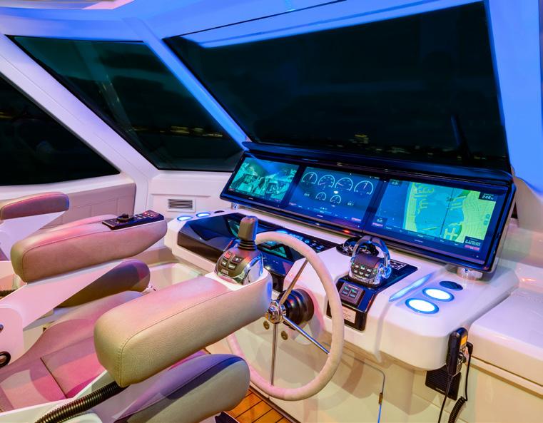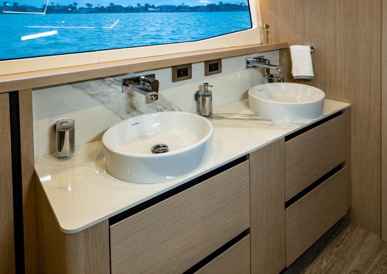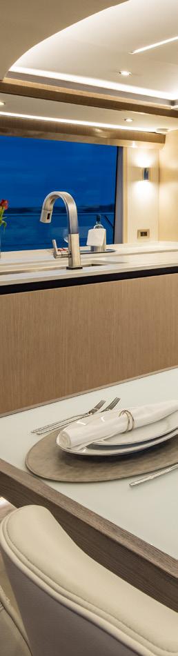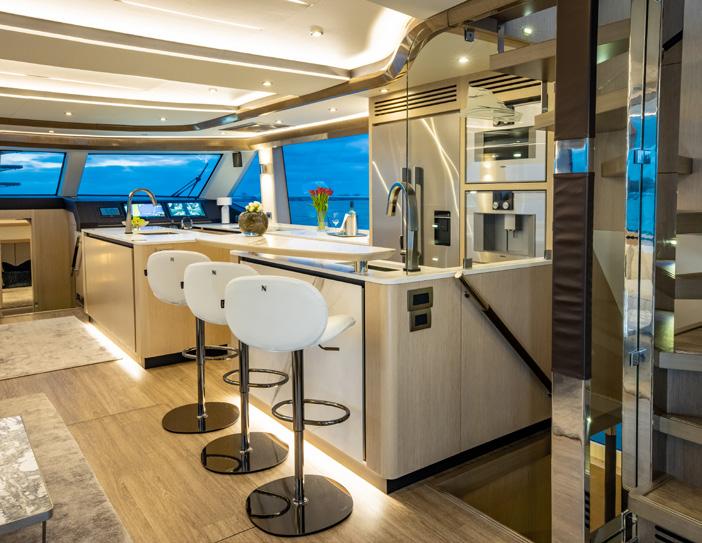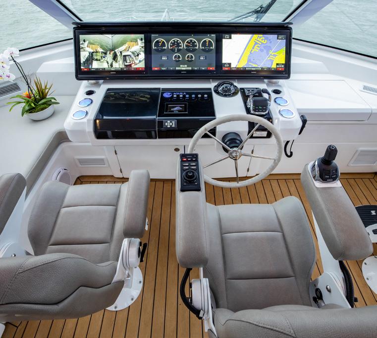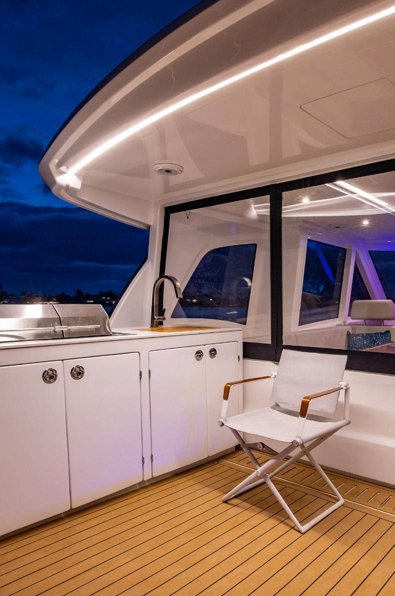 Then there’s the build. Aquila’s state-of-theart facility in Hangzhou City, China brings together leading components from global suppliers—Volvo Penta, Raymarine, Kohler, and hundreds more. Sophisticated tooling and ventilation systems, extensive process and quality controls, substantial use of solar power, and a workforce of more than 500 employees combine into a production capability Aquila positions as world-leading in power catamarans. In other words: inspired by the islands, designed and built by the world.