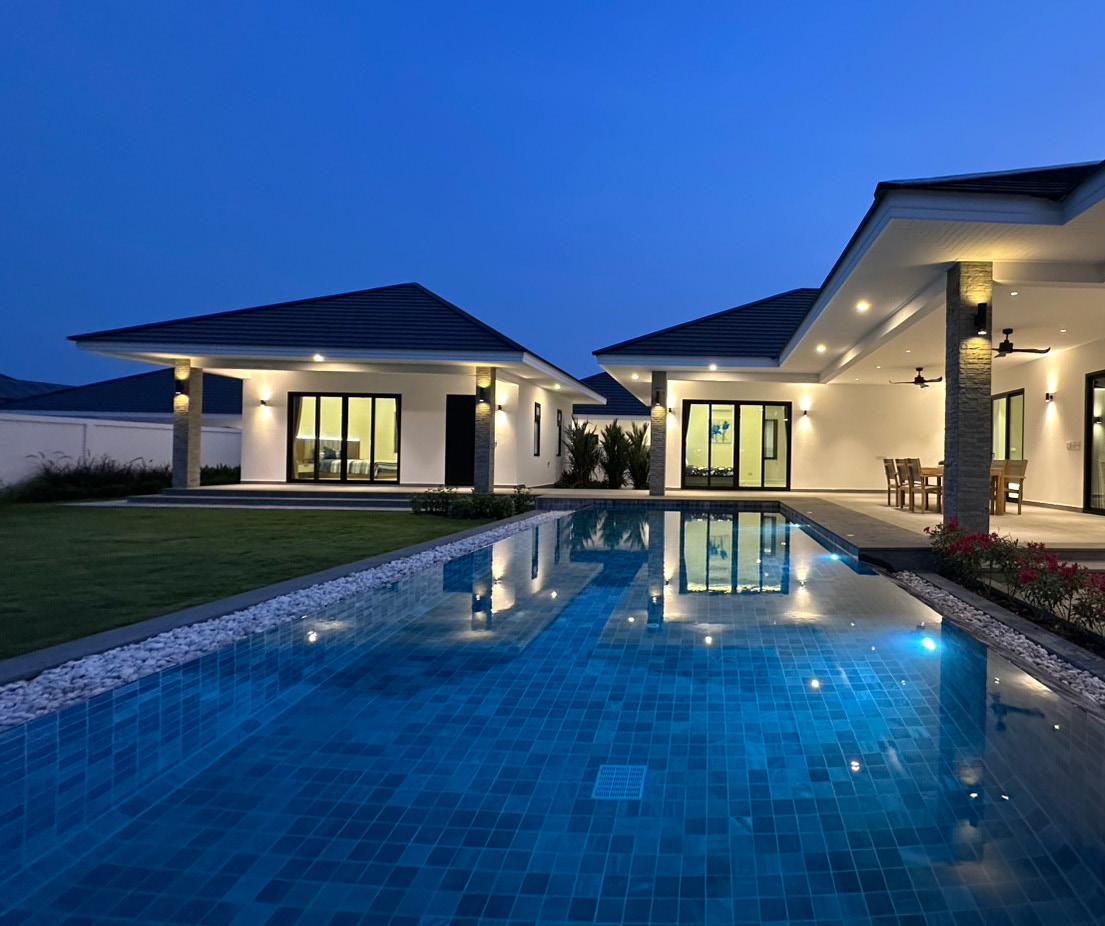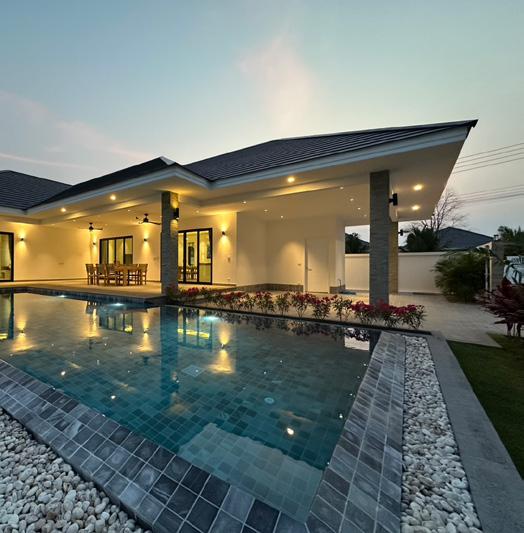 Modern Winner Pool Villas in tranquil Thap Tai, Hua Hin. Single-story elegance with seamless indoor-outdoor living, large swimming pool, and two-car garage. Luxury redefined.