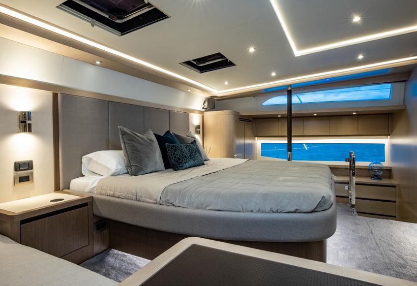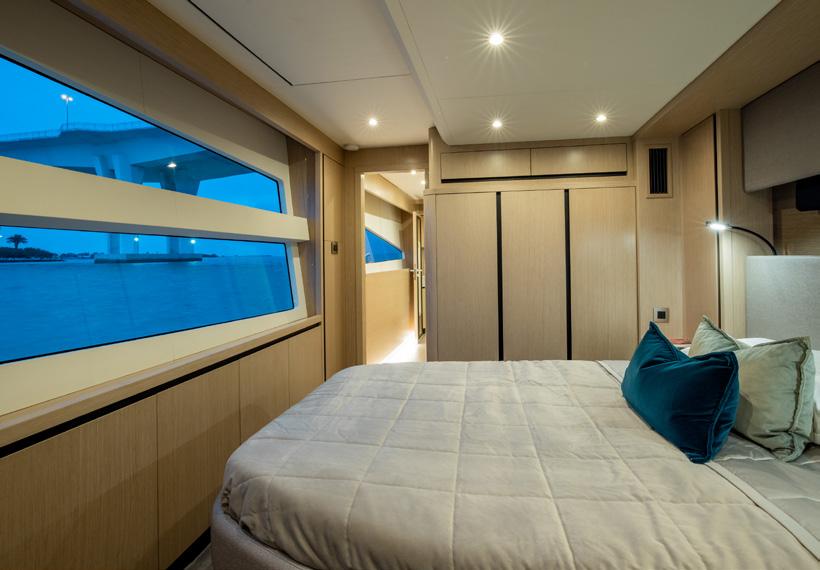 The emotional center of the Aquila 70 Luxury is its master suite—described as a breathtaking 27 feet wide. It’s the kind of statement that only a power catamaran of this size and confidence can make: a private domain with a breadth more often associated with waterfront residences than yachts. That width isn’t just for show; it’s for living—space to move unhurriedly, to breathe, to settle into quiet luxury with the water always in view.
