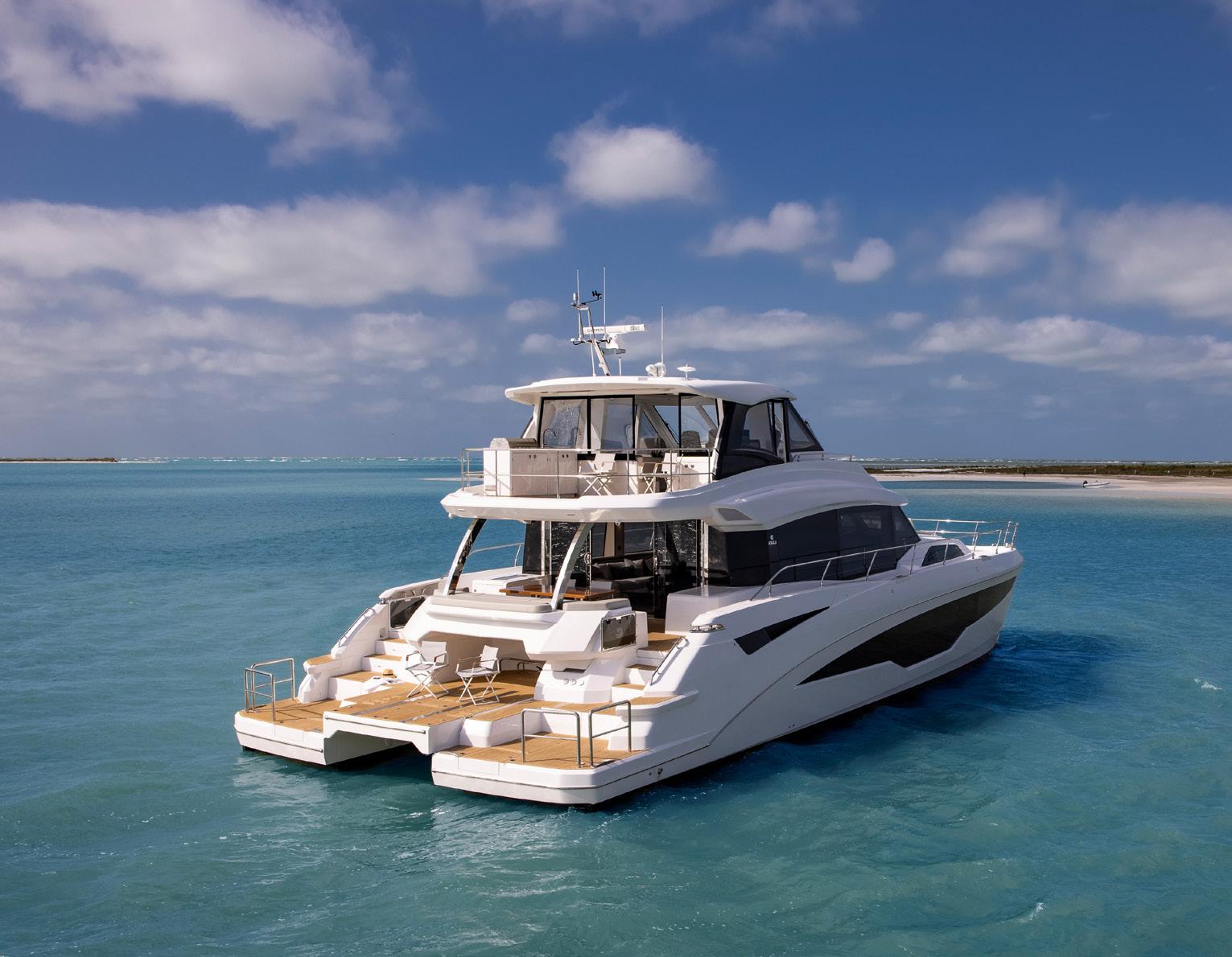The brand’s story is as international as its portfolio. Long-time boaters and colleagues Lex Raas, John Xiong, and Bill McGill recognized the untapped potential of the catamaran’s ancient engineering and joined forces to create Aquila Power Catamarans. The roots of the catamaran itself reach back to Indonesia—circa 3000 to 1500 BCE—where shallow draft reduced the risk of running aground and twin hulls delivered vital stability in demanding waters. Aquila takes that foundational logic and advances it into a thoroughly modern expression of luxury and capability.