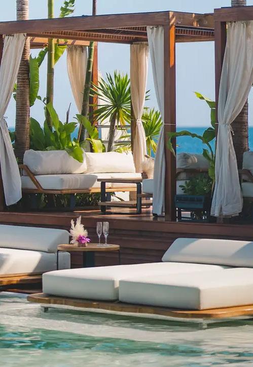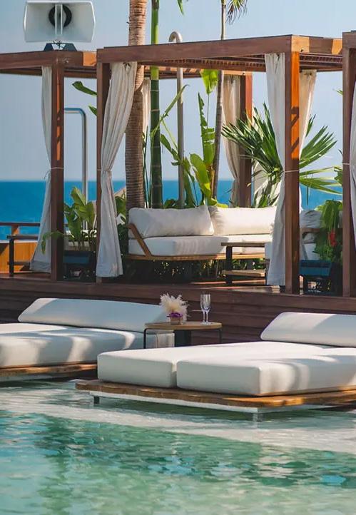 On Koh Samui's Lipa Noi Beach, Nikki Beach boasts sweeping sunset bay views across the Gulf of Thailand, framed by coconut groves and calm waters—perfect for relaxed celebrity escapes. Its expansive infinity pool overlooks the Gulf of Thailand, with VIP pods floating like private islands.