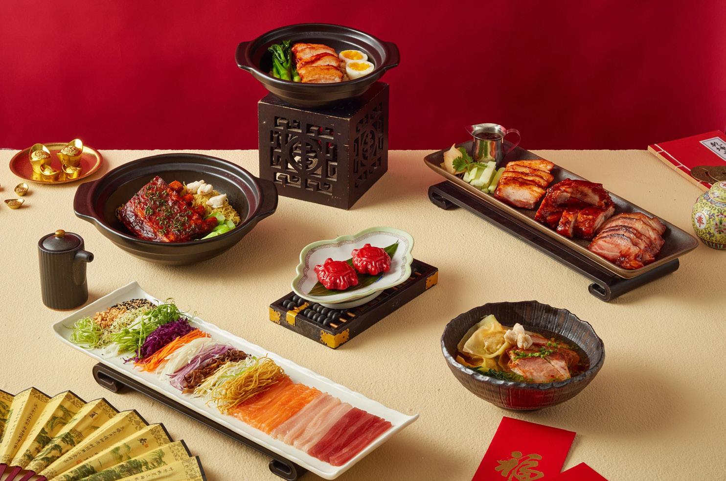 sweet potato and mung bean paste. For hosts who prefer to celebrate at home, a Lunar New Year Delivery Box Set gathers key favourites in one curated collection, including the Yu Sheng Loh salad, a full Chinese BBQ pork set, and a pair of Ang Ku Kueh cakes.