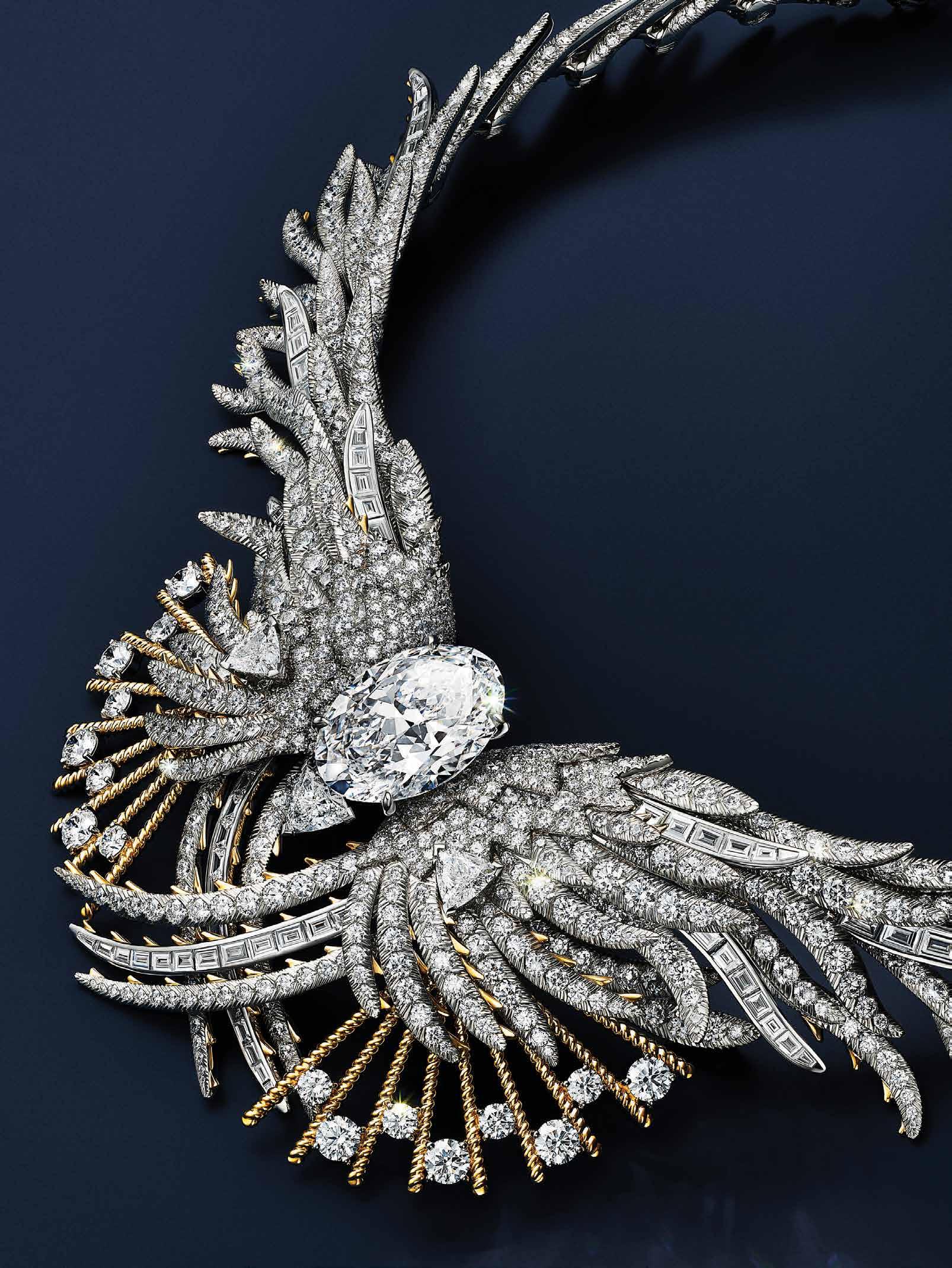 The 220-piece collection launches with a first chapter of 100 pieces, the scale and skill of which is exemplified by the magnificent Couer de Paris necklace, which has as its centrepiece a uniquely coloured 56.23ct diamond, the collection’s rarest stone.