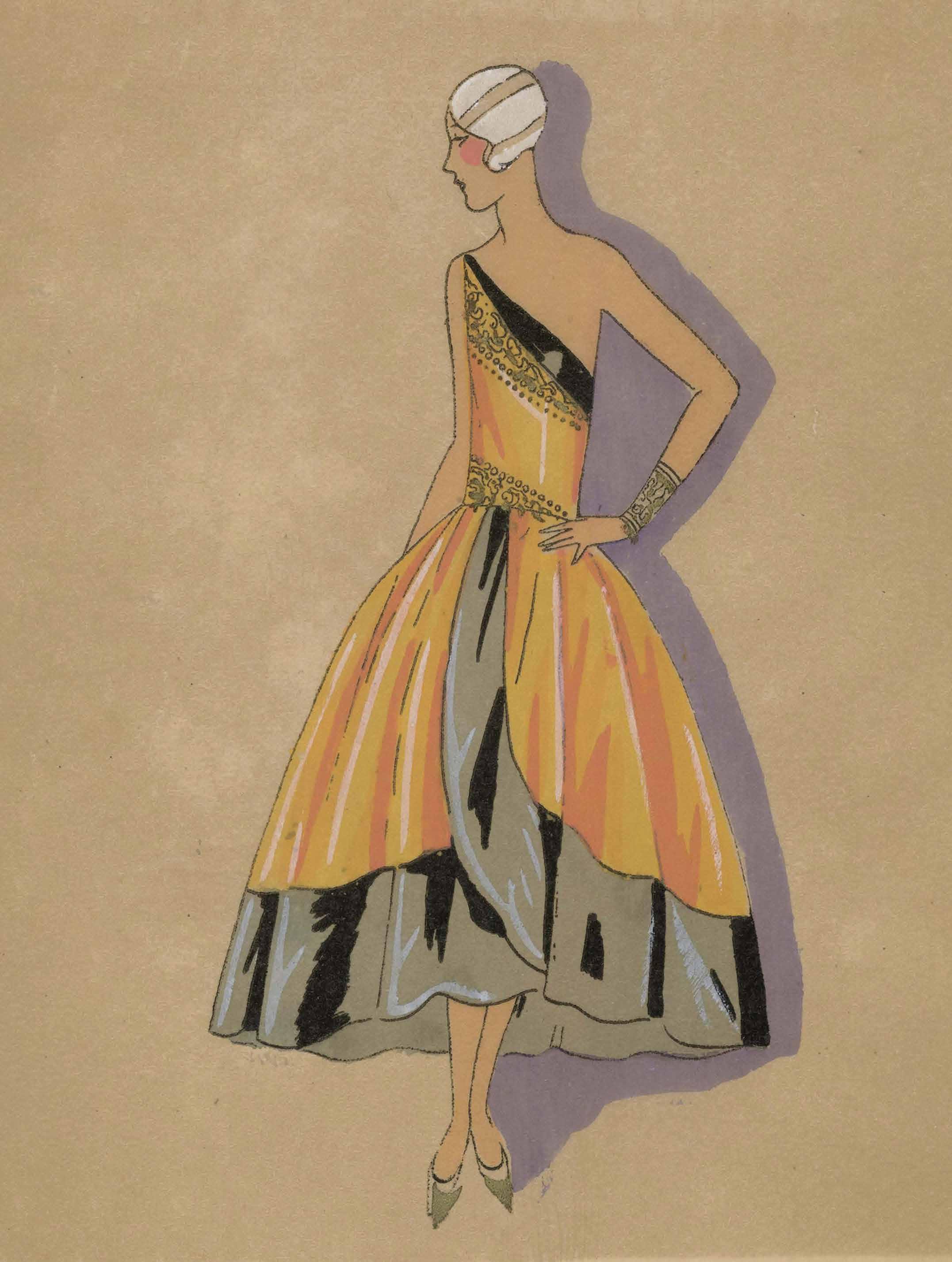 Left: Assorted hats and dresses. Fashion Illustration, November 1920 in La Gazette du Bon Ton © MFA Boston This page, from top to bottom: Acimboldesque Woman’s hat, around 1920 © Philadelphia Museum of Art; silk coat, around 1913 © Palais Galliera, Musée de la mode de la ville de Paris