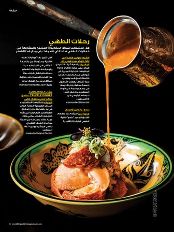 كوتشي في شيكوكو ،حيث يقوم الطهاة بشواء الطعام باستخدام القش الجاف بد ً ال من الفحم للحصول على نكهة ومذاق فريد ،مع إشعال نيران عاليةmandarinoriental.com . عشاء CLONAKILLA - TRUFFLE DINNERفندق ون آند أونلي وولغان فالي، اإلمارات يتمتع هذا المنتجع ذو المناظر الطبيعية الخالبة ،الكائن في أوز ،بتشكيلة مثيرة لعشاق الطعام عبر الفعاليات التي تقام خالل فترة الشتاء ،بما في ذلك وجبة عشاء مستوحاة من الكمأة، من إعداد الشيف التنفيذي نانسي كينشيال ،يومي 16و17 أغسطس. oneandonlyresorts.com