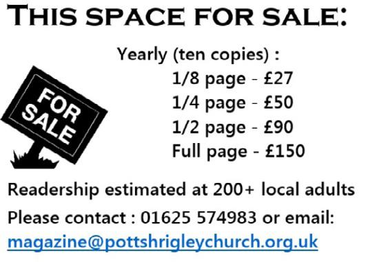 Website: Tess Phillips, 26 Hurst Lane, Bollington, SK10 5LP info@pottshrigleychurch.org.uk