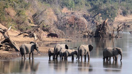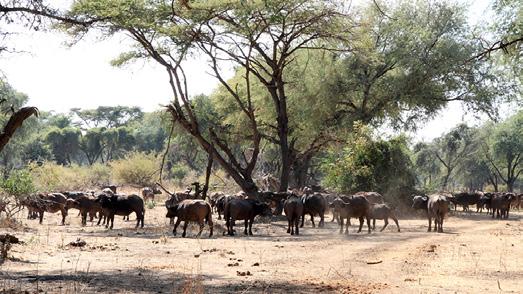Once we seemed to be witnessing a huge gathering of all the animals. We had seen a large number of elephants lumbering across a plain, and round the next bend we surprised a mixed group of impala, puku, waterbuck, kudu – and one eland. They turned as one body and fled in the same direction as the elephants. Some came leaping across our path, one so close it nearly crashed into our car. It turned out to be a waterbuck, which is apparently quite rare in those parts. The cause of the panic turned out to be some hyenas, which were