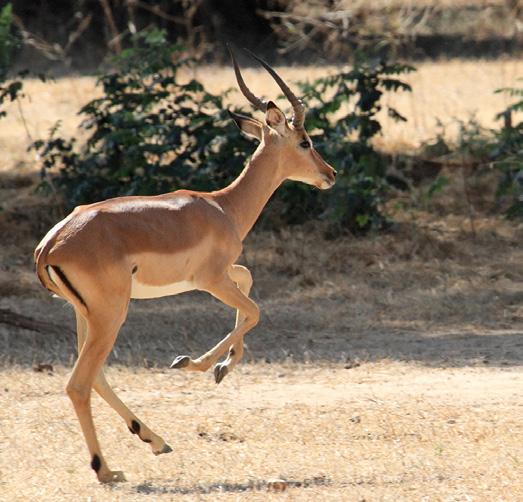 Our first sightings of herds of puku and impala were breathtaking, they are such delicate and beautiful animals, and even when we had seen so many of them that we scorned them in our impatience to see something rarer, we never got tired of watching their incredible, apparently effortless leaps through the air. The impala especially were a delight to watch, with their subtle colouring – a sort of caramel colour – and delicate markings. When they were at a safe distance, they would turn their heads as one, ears wide apart, and gaze at us with their huge soft eyes,