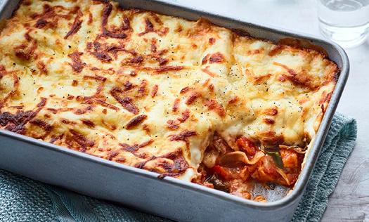 In a large oven proof dish, layer the cooked vegetable mixture first, then the Béchamel sauce, followed by 2 sheets of lasagne to cover the mixture.