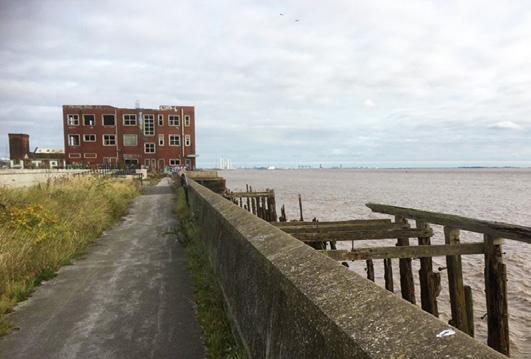 After a mile or so we began to hit the industrial areas to the west of the city. At St Andrews Quay, the brownfield site has now been turned into a shopping area, but on a small peninsula a little further towards the city, St Andrew’s dock itself was eerily quiet and derelict. Opened in 1883 and named after the patron saint of fishermen, it was once home to the world’s largest deep-water trawler fleet, but now the graffiti-covered buildings stand silently staring over the Humber. The trawlers from this port fished the deep Arctic waters around Iceland, Greenland, and even as far as Arctic Russia. Their work was very profitable, but also extremely dangerous. It is estimated that a staggering 6,000 trawlermen from the city perished between 1835 and 1980, and a memorial stands on this bleak spot to commemorate them.