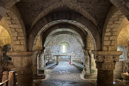 February 2024 saw Duncan and me on a bellringing trip to Essex, where we were intrigued to spot a sign to one of the oldest churches in England – St Peter-on-theWall, Bradwell-on-Sea. It was a beautiful, crisp winter’s day, so having a little spare time after lunch we wandered down to investigate. The church was built by St Cedd, an Anglo-Saxon monk who in AD 653 had landed on the quay of the old Roman fort of Othona. The first church Cedd built at Bradwell was probably wooden, but with so much stone from the deserted fort lying around, Cedd replaced the original wooden structure in 664 with the stone chapel that stands to this day.