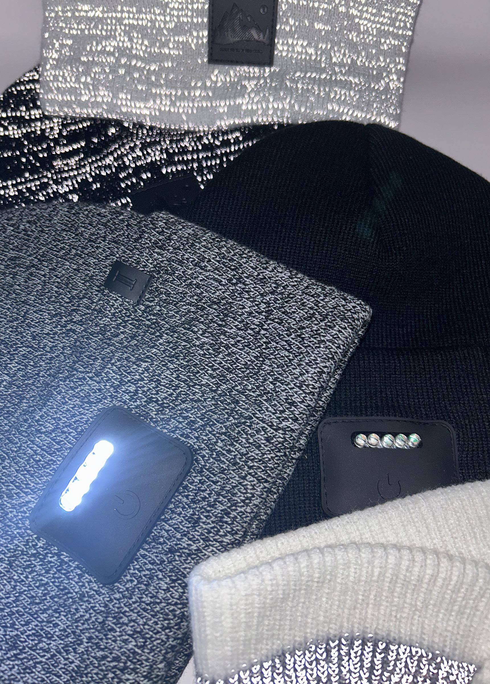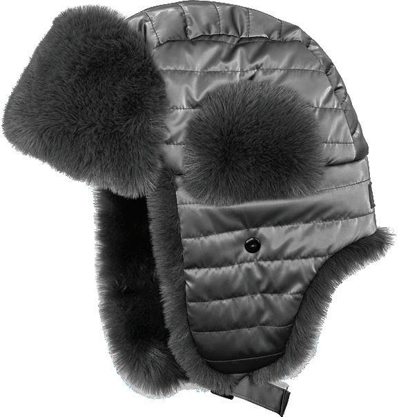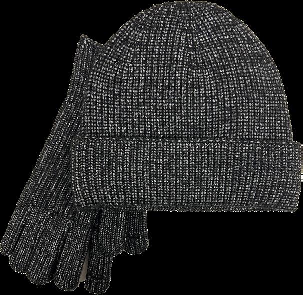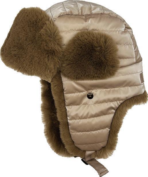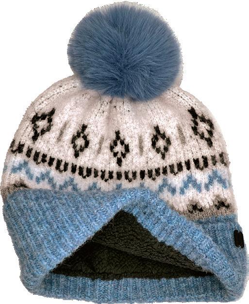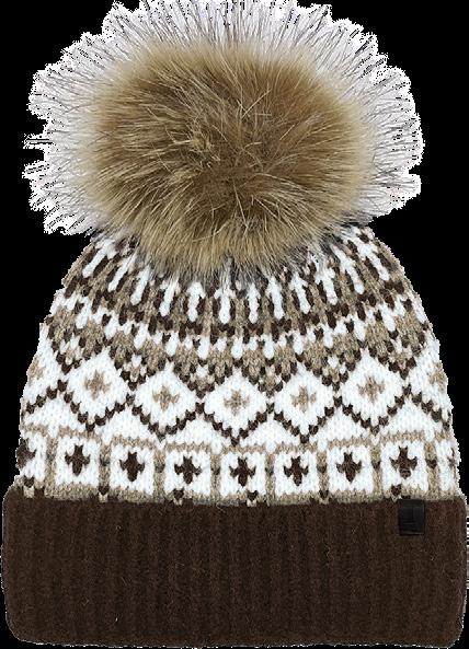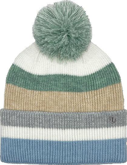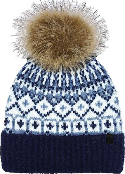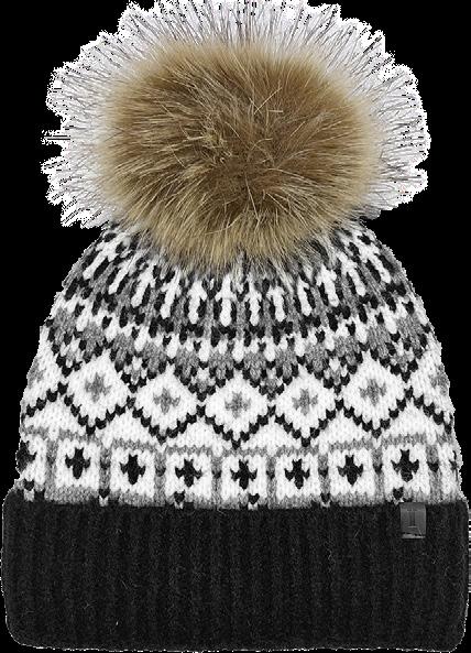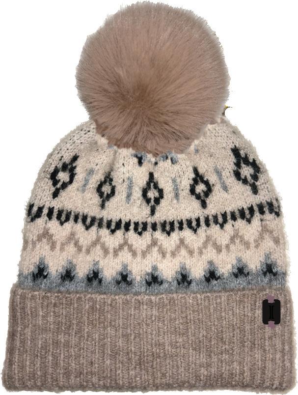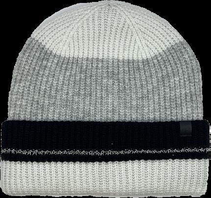 • Acrylic/PBT/Nylon/Wool • Reflective stripe within block pattern • Reflective within pom