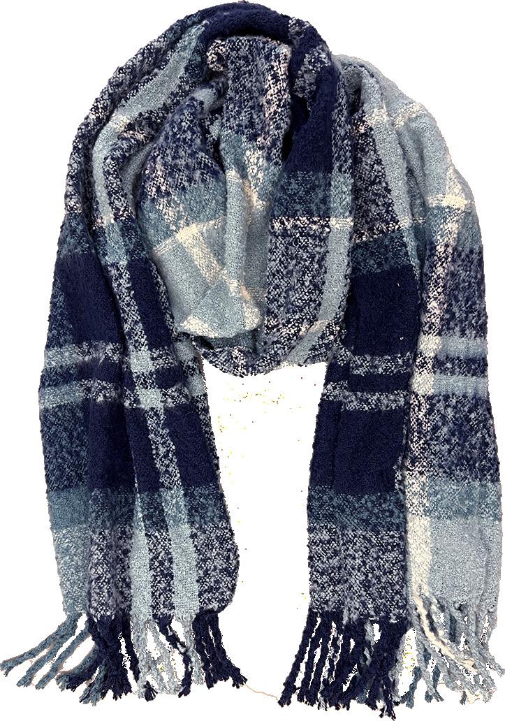 PLAID NOODLE SCARF (OPPOSING PG) • Polyester • Heavy brush