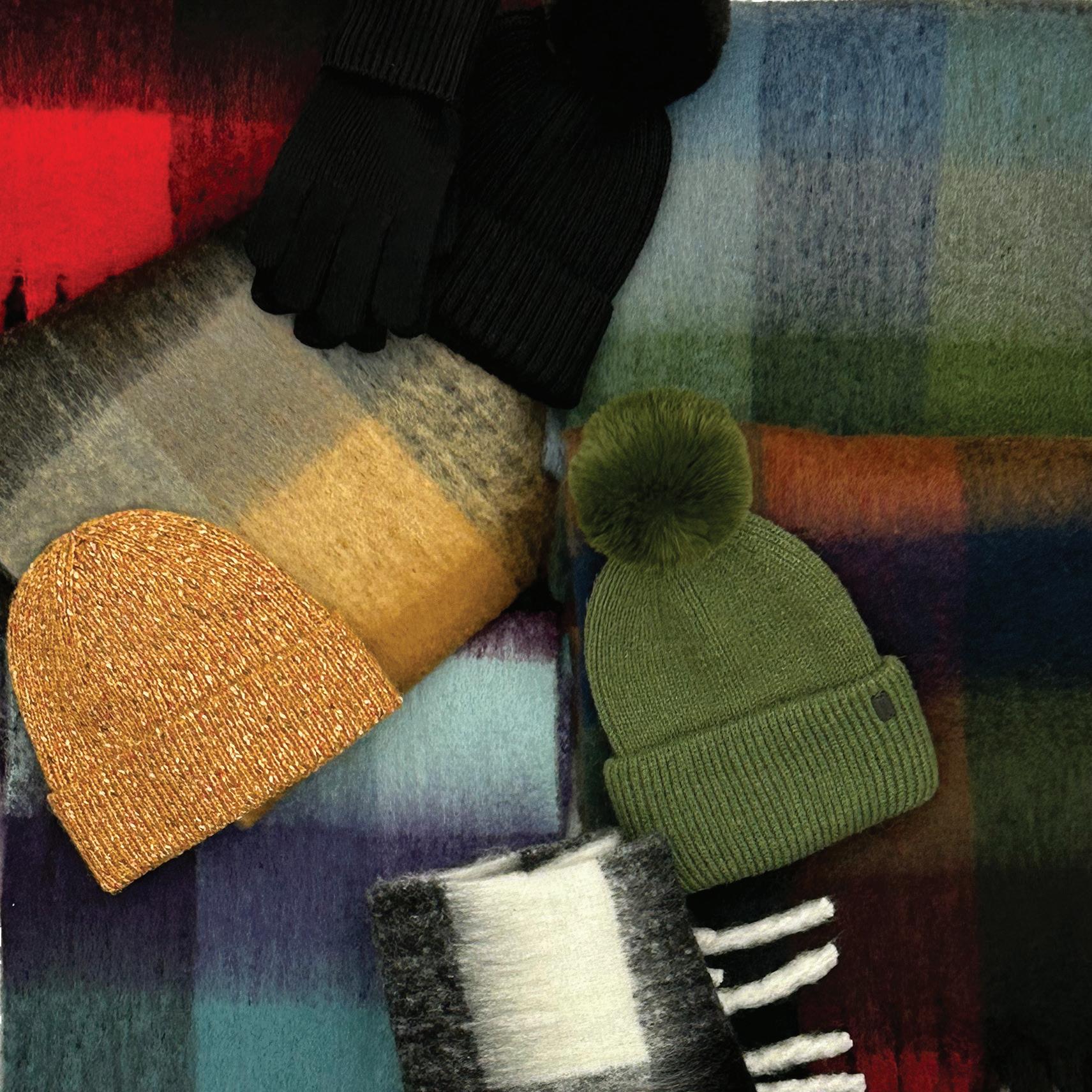 Pair up the pieces that suit your merchandise mix. Pick a hat, any hat. Pick a scarf, any scarf. Product colorations coordinate across the entire assortment.