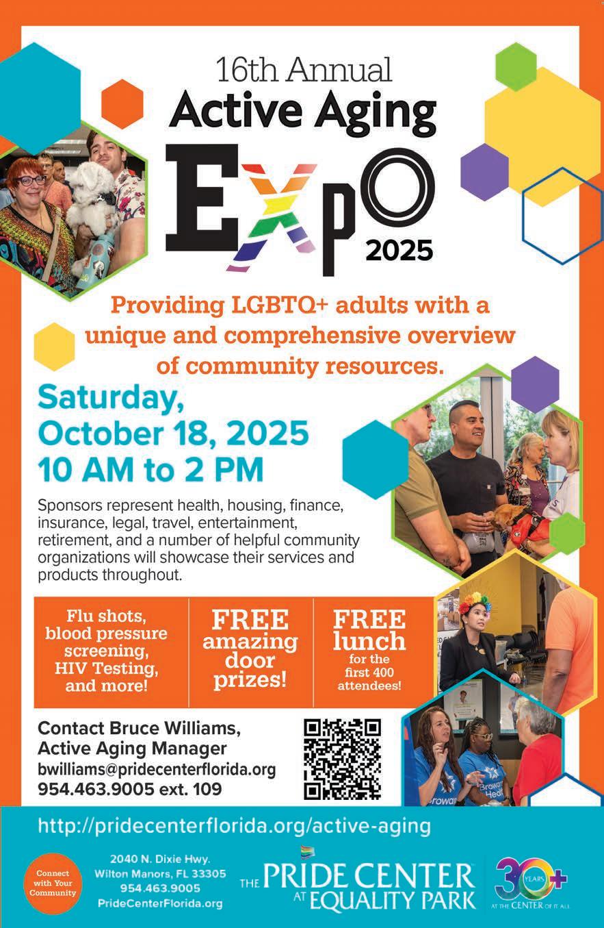 Expo, which provides LGBTQ+ adults a unique and comprehensive overview of community resources. The event takes place from 10am to 2pm and features lots of free stuff. For more information go to: Pridecenterflorida.org/active-aging