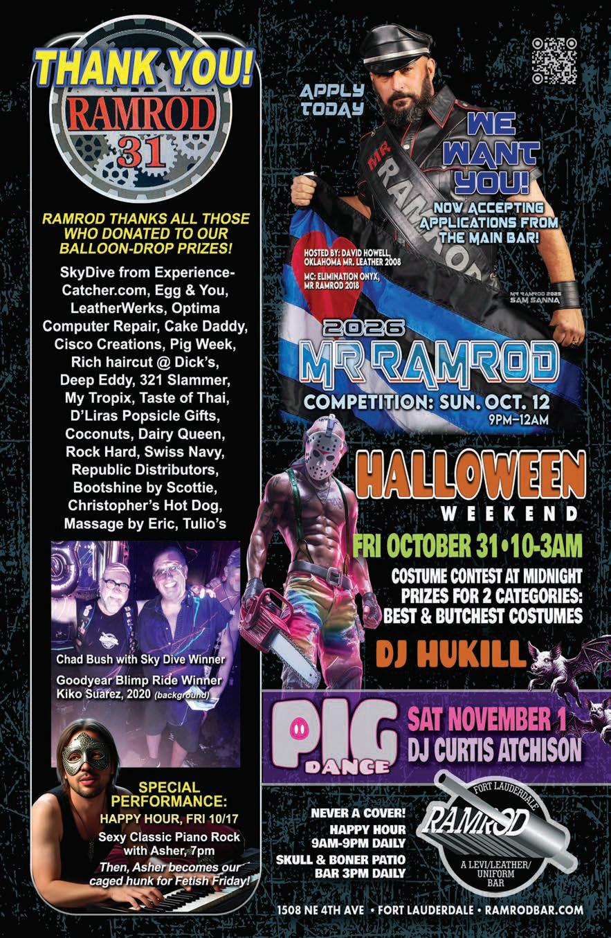 The Ramrod presents the annual Mr. Ramrod competition from 9pm to 12 midnight. The event is hosted by David Howell, with MC Elimination Onyx, and stars Mr. Ramrod 2025 Sam Sanna.