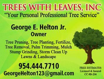 Make your home a showplace. INTEGRITY LANDSCAPE SERVICES, LLC specializes in property clean up, tree and shrub pruning, sodding and landscape design & installation. We also do lawn maintenance. Call 954-812-5434 or 954-288-3601 our website at www.integrityLandscapingService.com 122 | HotspotsMagazine.com