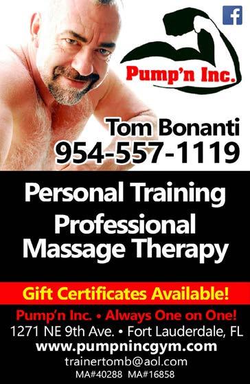 Tom Bonanti is a certied tness trainer and massage therapist (MA#40288) with his own one on one gym in Ft. Lauderdale. Contact trainertomb@aol.com with questions or to set up a free tness consultation.