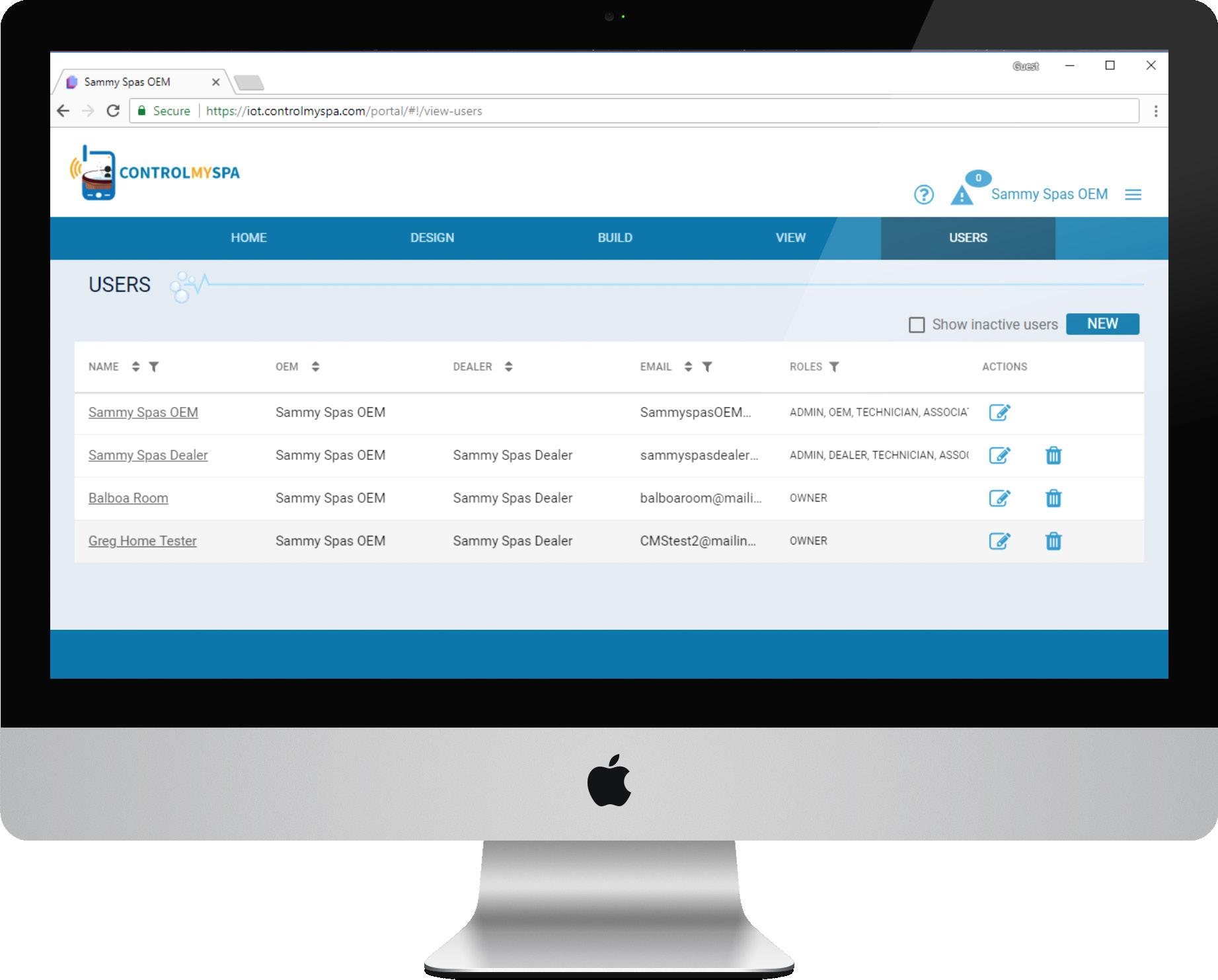 • Temporary OWNER User Accounts created by Dealers or OEMs to Demo ControlMySpa in a Showroom or Trade Show.