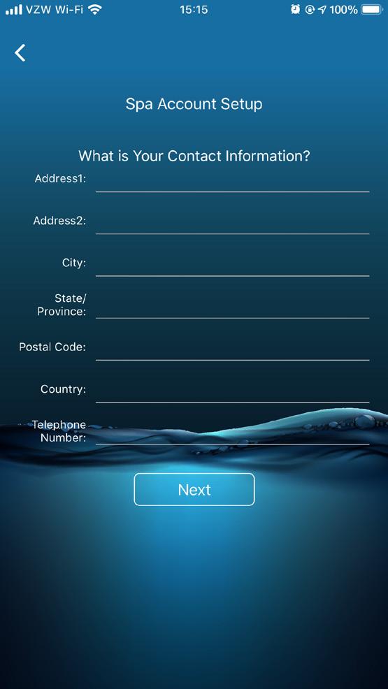 The CMS code is a unique number for each OEM/Dealer pair. The CMS code can also be obtained via the Dealer login on the CotrolMySpaTM website. Press “Next“.