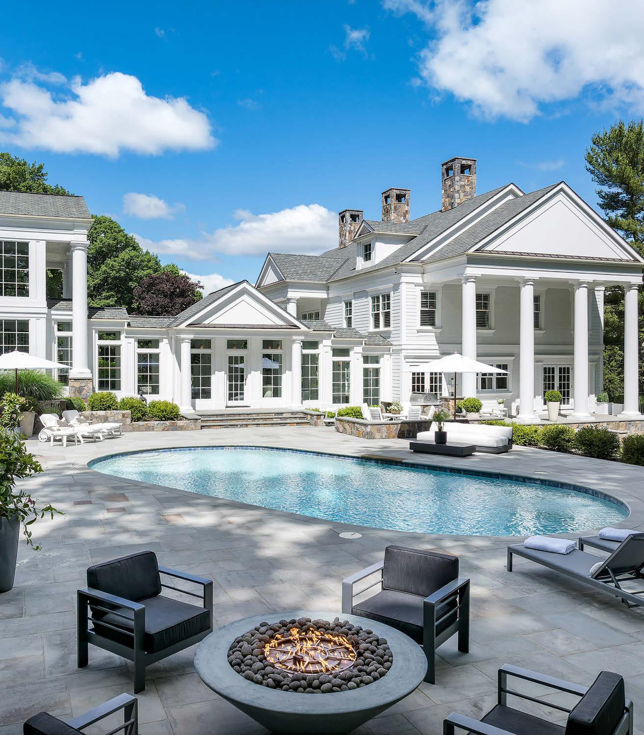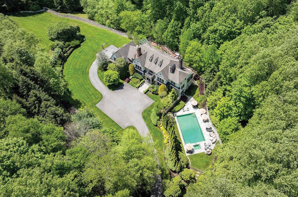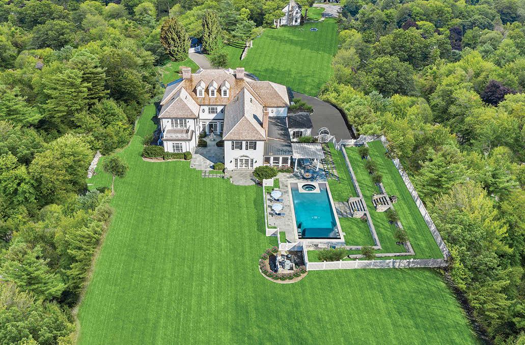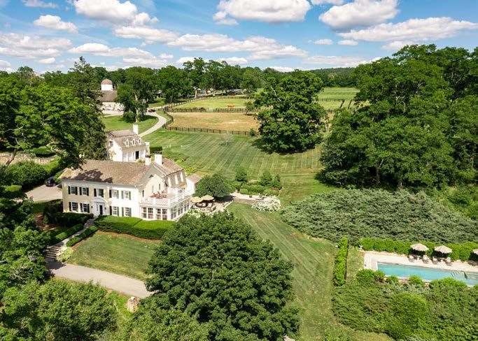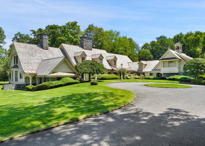 Bucolic Greenwich Compound. 10,000+ sq. ft. home sits beyond a gated entrance on 4.7 acres with pool, barn and two-bedroom guest house.
